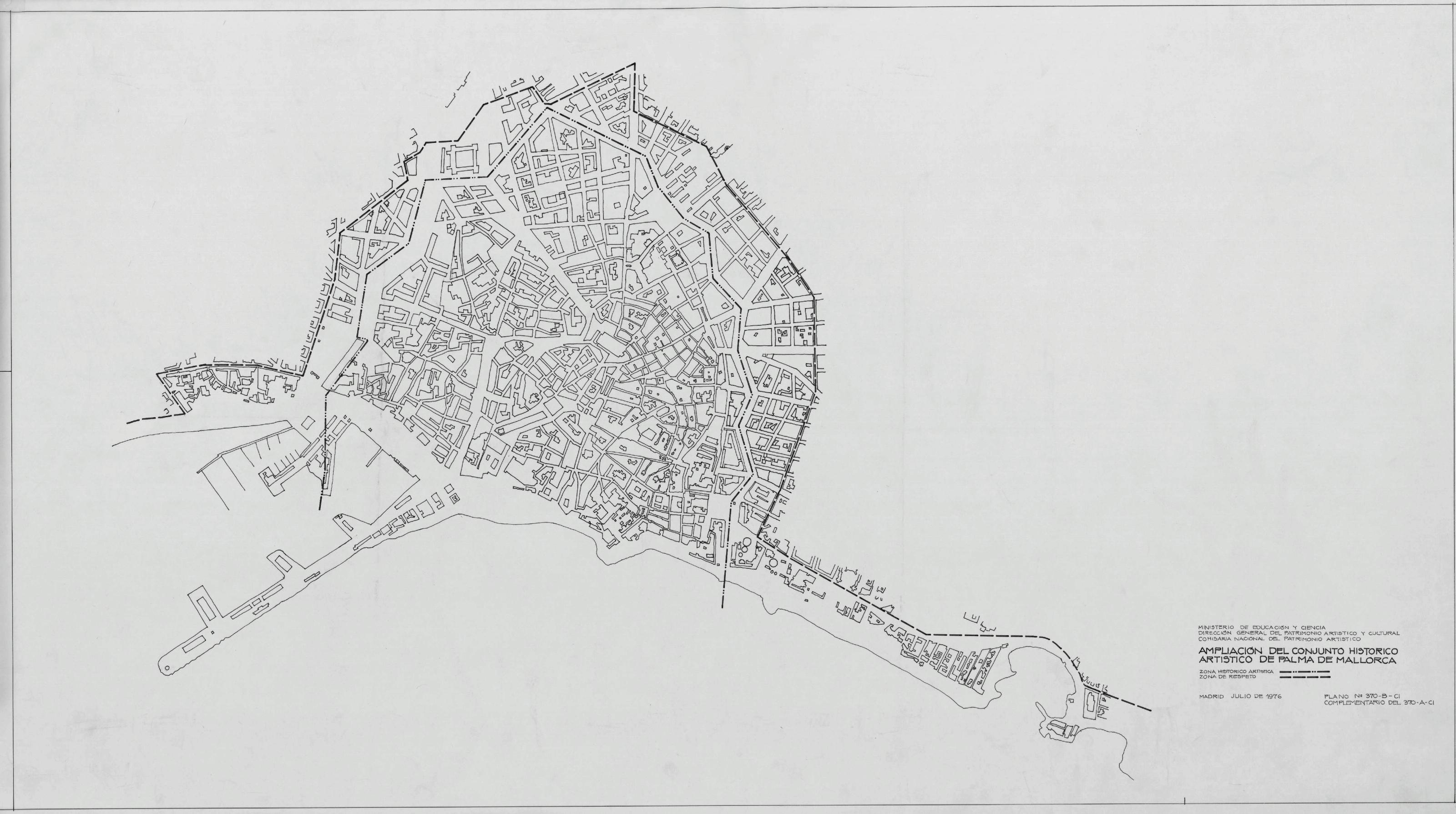 CONJUNTO HISTORICO ARTISTICO DE PALMA DE MALLORCA.: PLANO DE SITUACION. Nos marca la zona de respeto y la zona historica artistica.