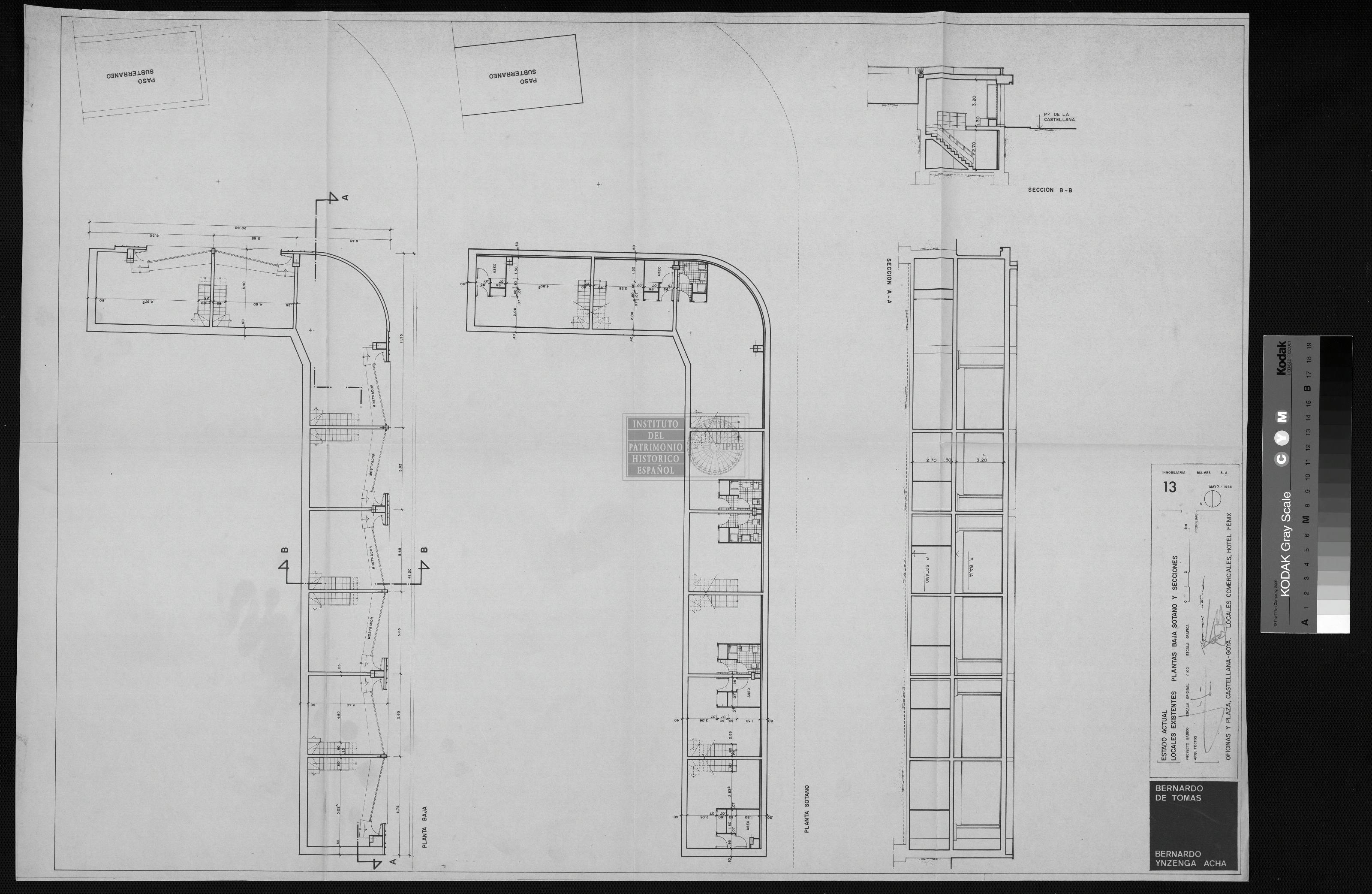 OFICINAS Y PLAZA. CASTELLANA-GOYA. LOCALES COMERCIALES, HOTEL FENIX: LOCALES EXISTENTES, PLANTAS BAJA, SOTANO Y SECCIONES