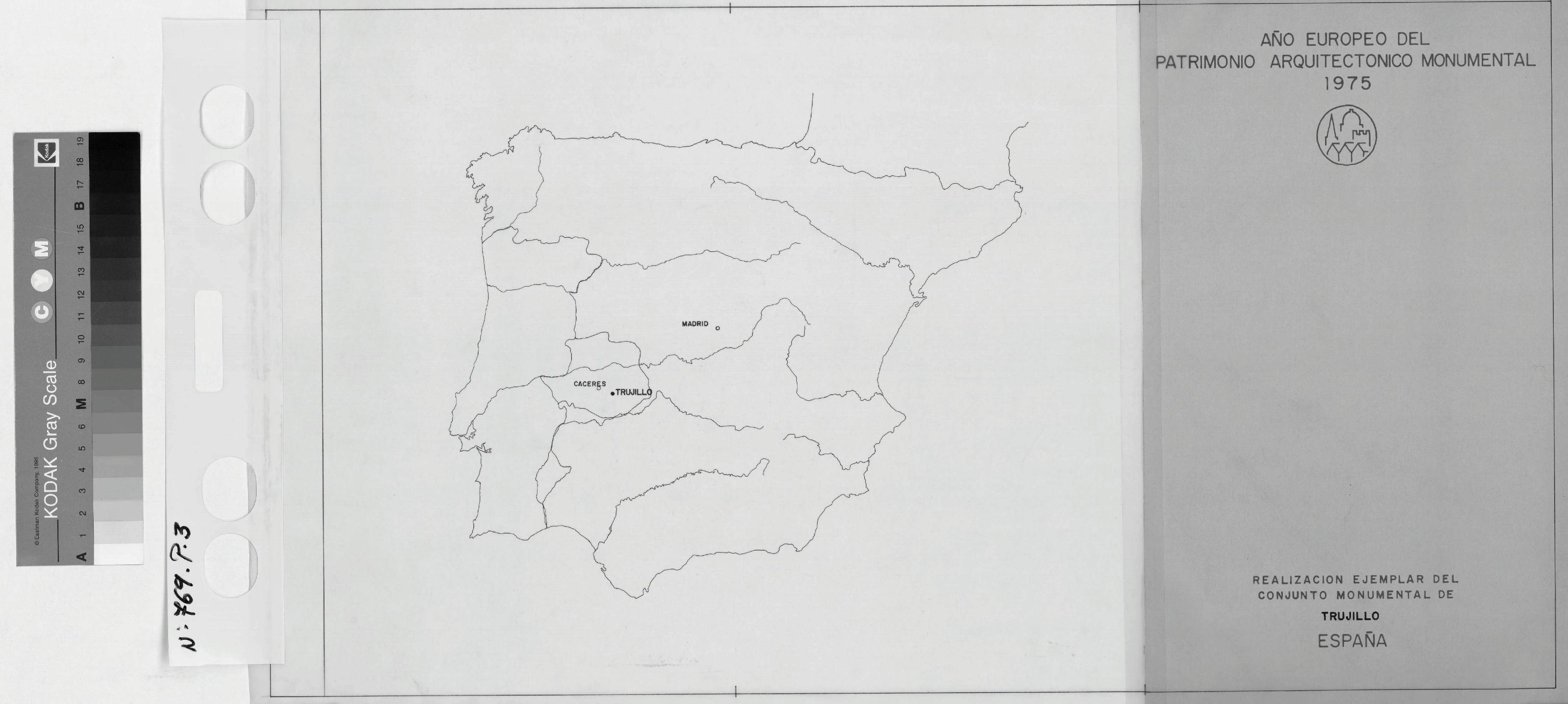 CONJUNTO HISTORICO ARTISTICO DE TRUJILLO: PLANO GENERAL DE LA PENINSULA IBERICA CON LA LOCALIZACION DEL MUNICIPIO DE TRUJILLO