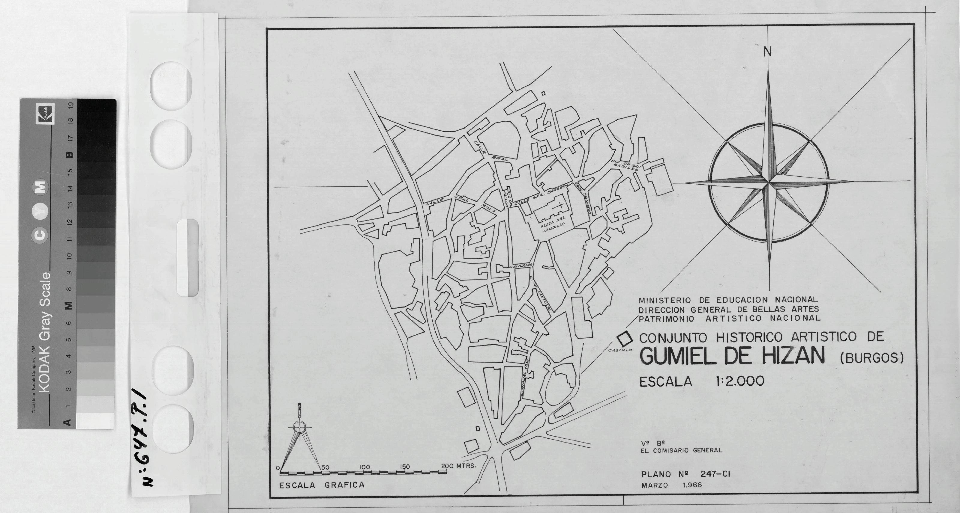 CONJUNTO HISTORICO ARTISTICO DE GUMIEL DE HIZAN - BURGOS -: PLANTA GENERAL.Plano del conjunto , emplazamiento, marca la iglesia y alguna calle perimetral, plano sin cotas.