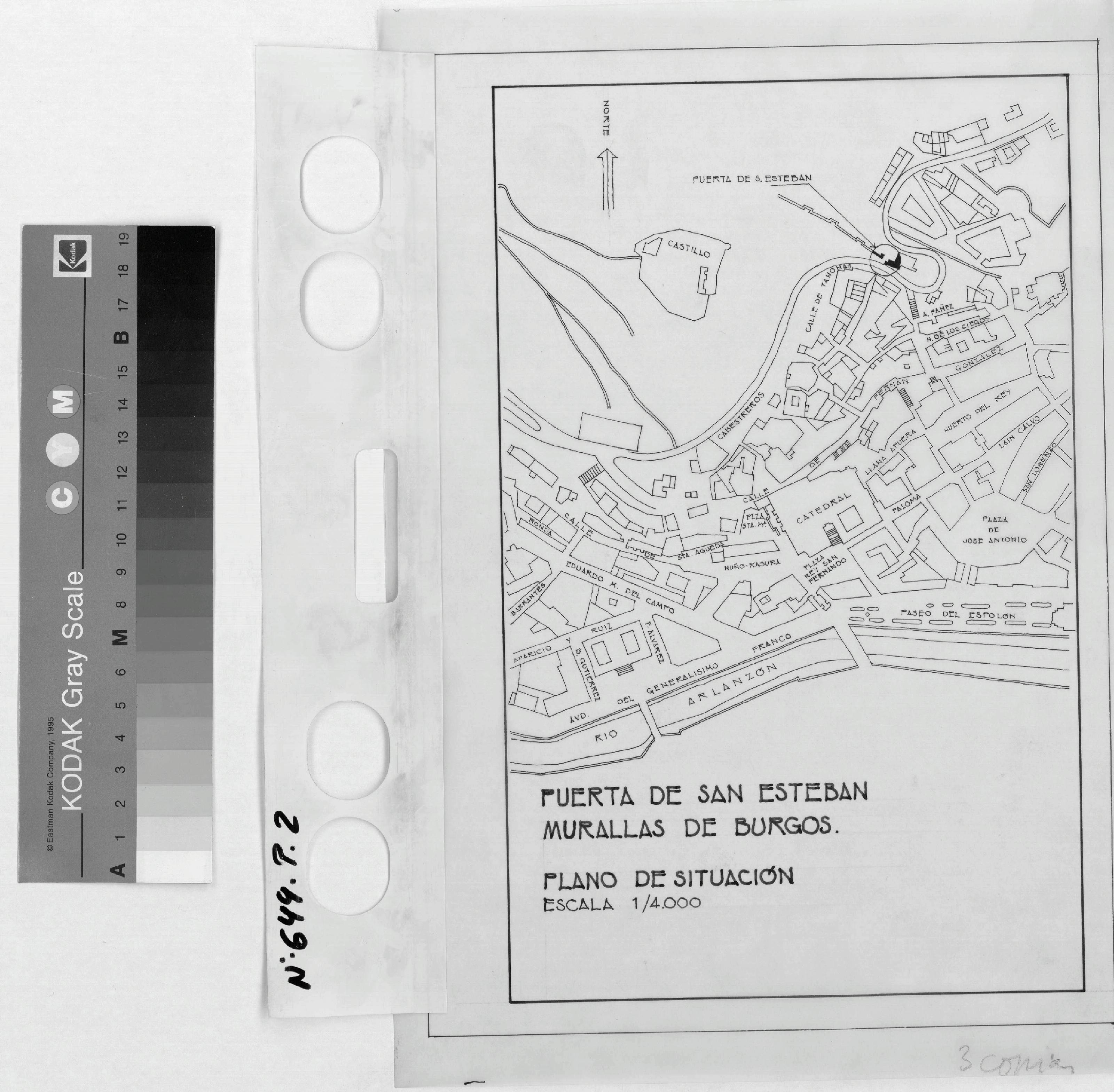 CONJUNTO HISTORICO ARTISTICO DE BURGOS.- PUERTA DE SAN ESTEBAN.-: PUERTA DE SAN ESTEBAN. MURALLAS DE BURGOS. .Plano del conjunto , emplazamiento, con nomenclatura de calles y monumentos, plano sin cotas.