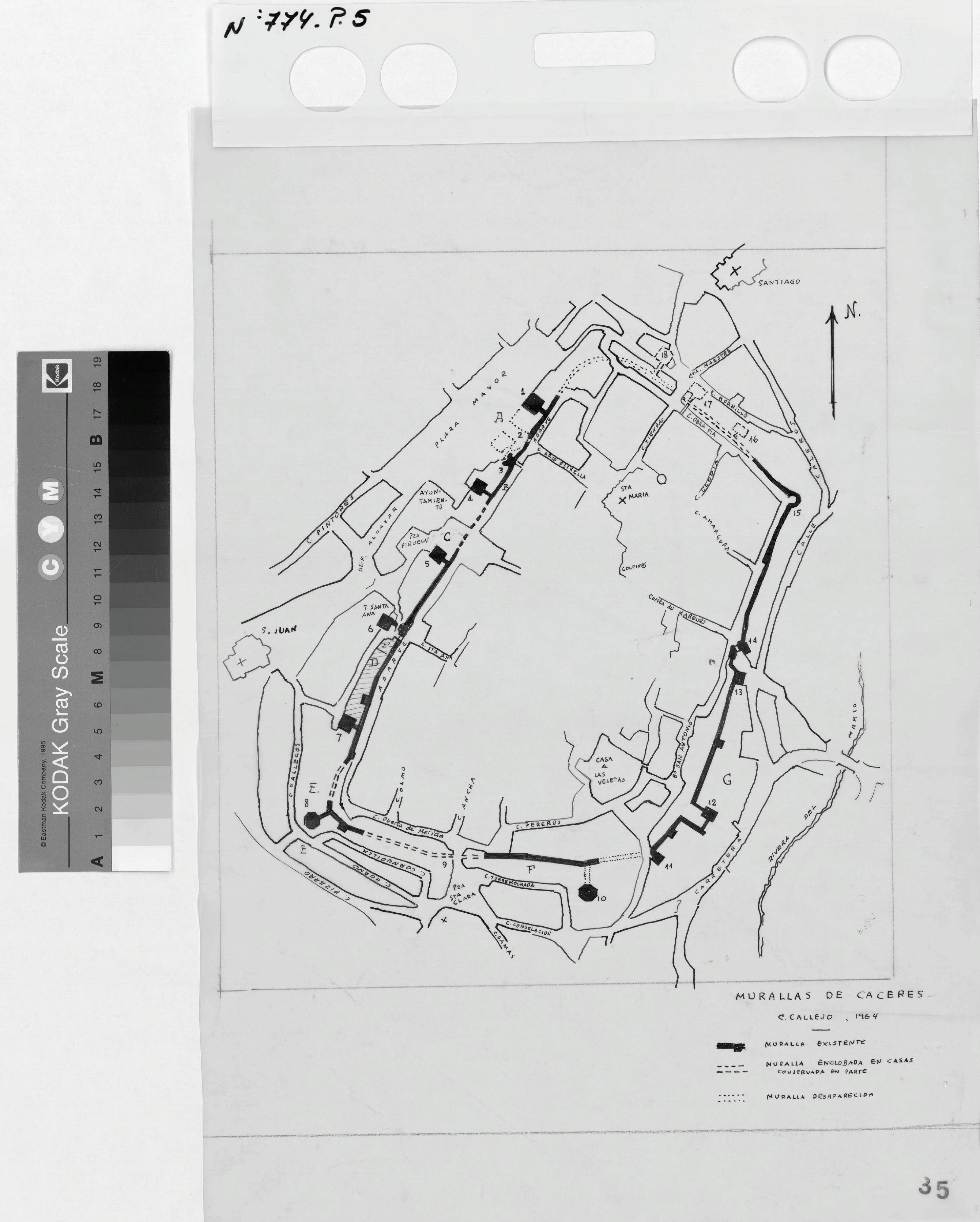 CONJUNTO HISTORICO ARTISTICO DE Cáceres: PLANO GENERAL CON DELIMITACION DE LA MURALLA