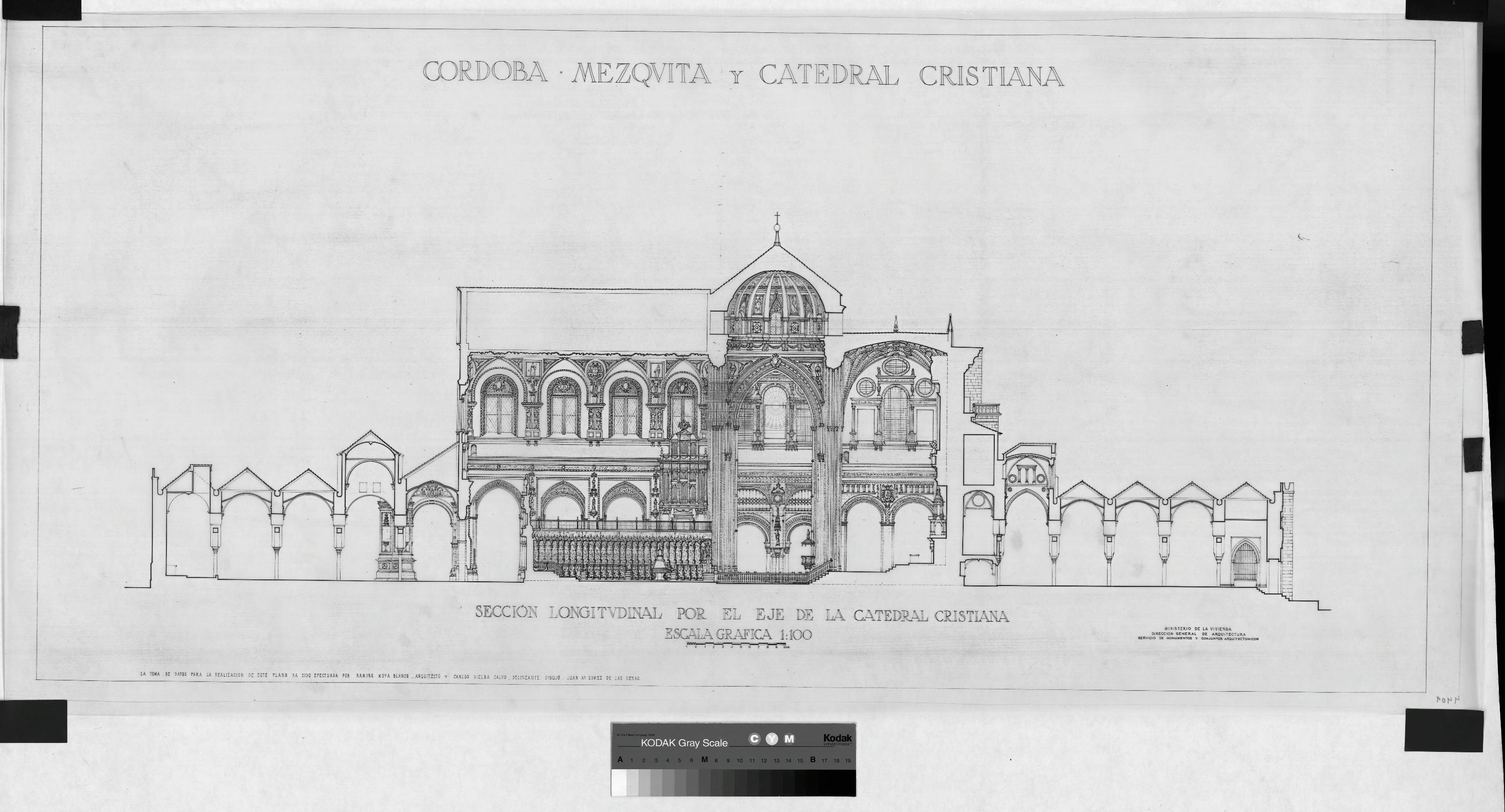 MEZQUITA Y CATEDRAL CRISTIANA.: SECCION LONGITUDINAL POR EL EJE DE LA CATEDRAL CRISTIANA