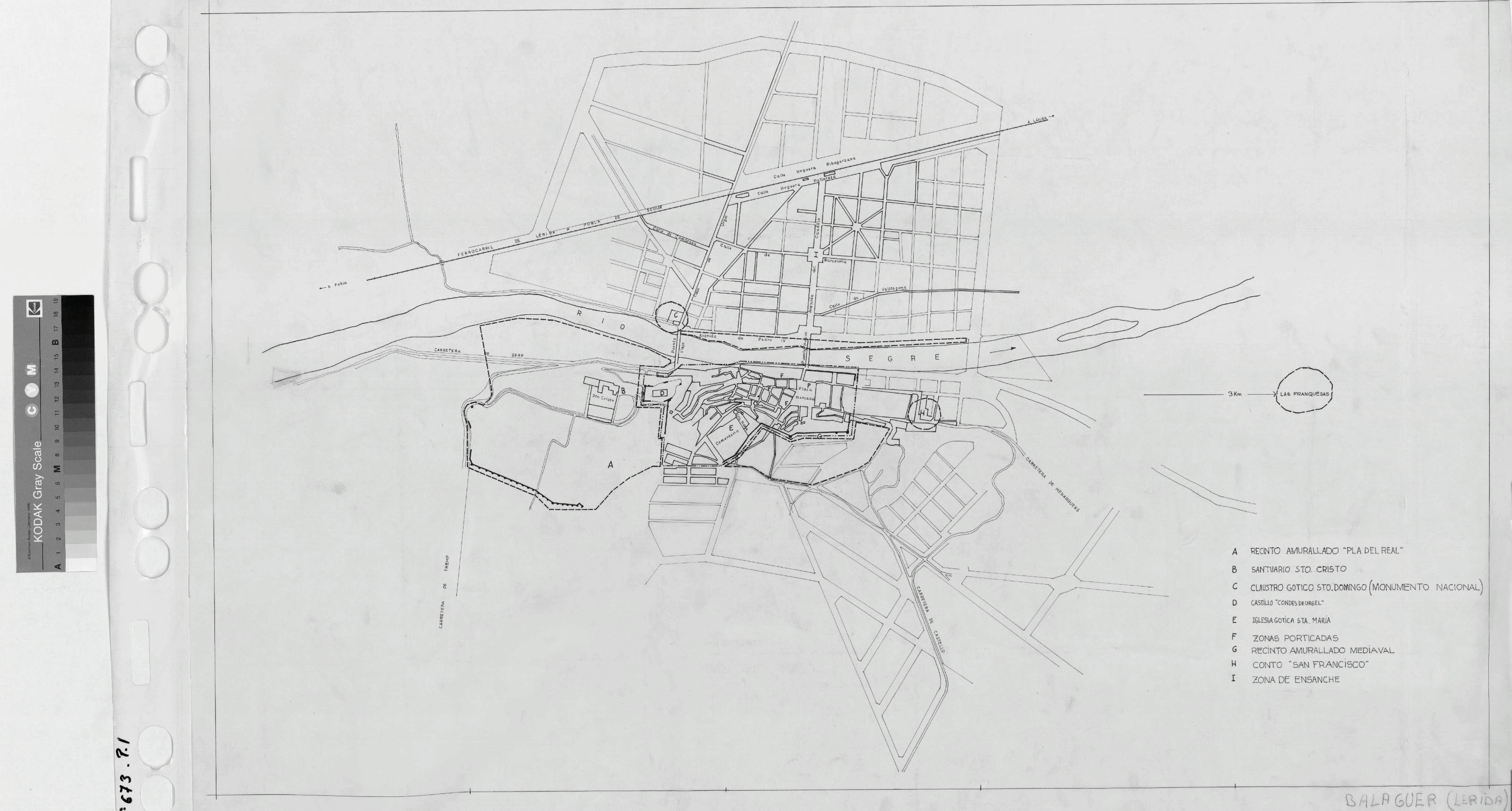 CONJUNTO HISTORICO ARTISTICO DE BALAGUER - LERIDA. -: PLANO DEL CONJUNTO HISTORICO DE LA CIUDAD. Plano donde aparece marcado las zonas a destacar, junto con una leyenda,