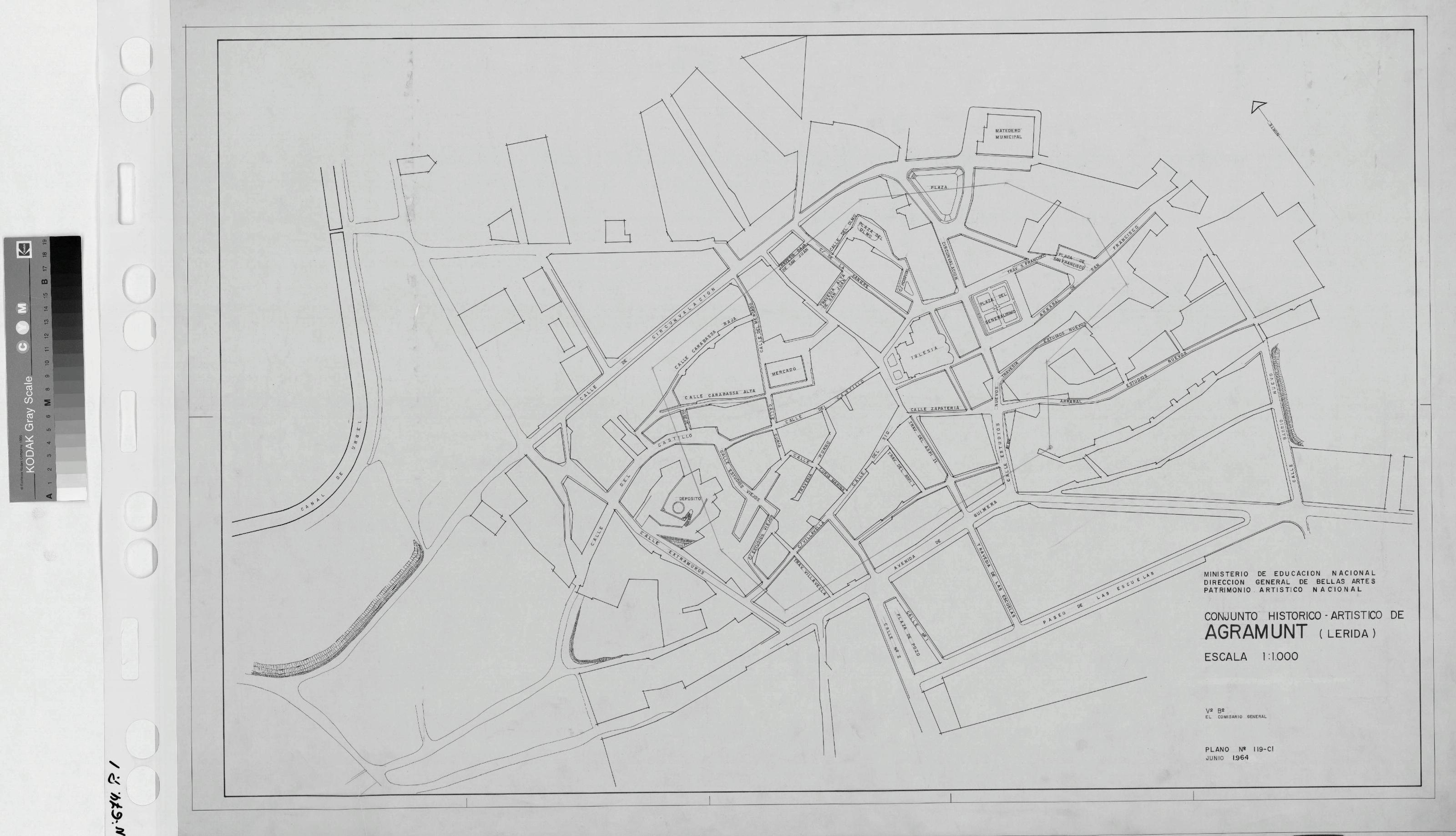 CONJUNTO HISTORICO ARTISTICO DE AGRAMUNT - LERIDA. -: PLANTA GENERAL DEL CONJUNTO HISTORICO DE LA CIUDAD. Plano de situacion, Aparece nomenclatura de calles.