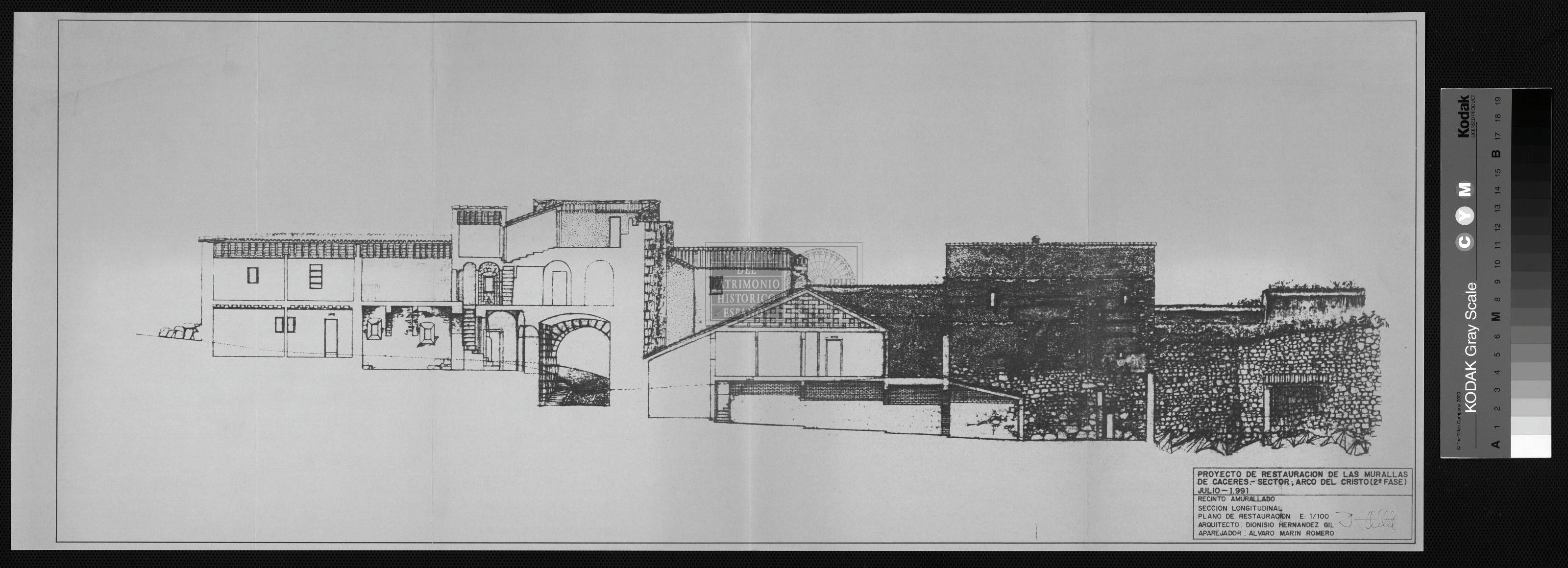 PROYECTO DE RESTAURACION DE LAS MURALLAS DE CACERES: SECTOR ARCO DEL CRISTO 2ª FASE.: RECINTO AMURALLADO. SECCION LONGITUDINAL