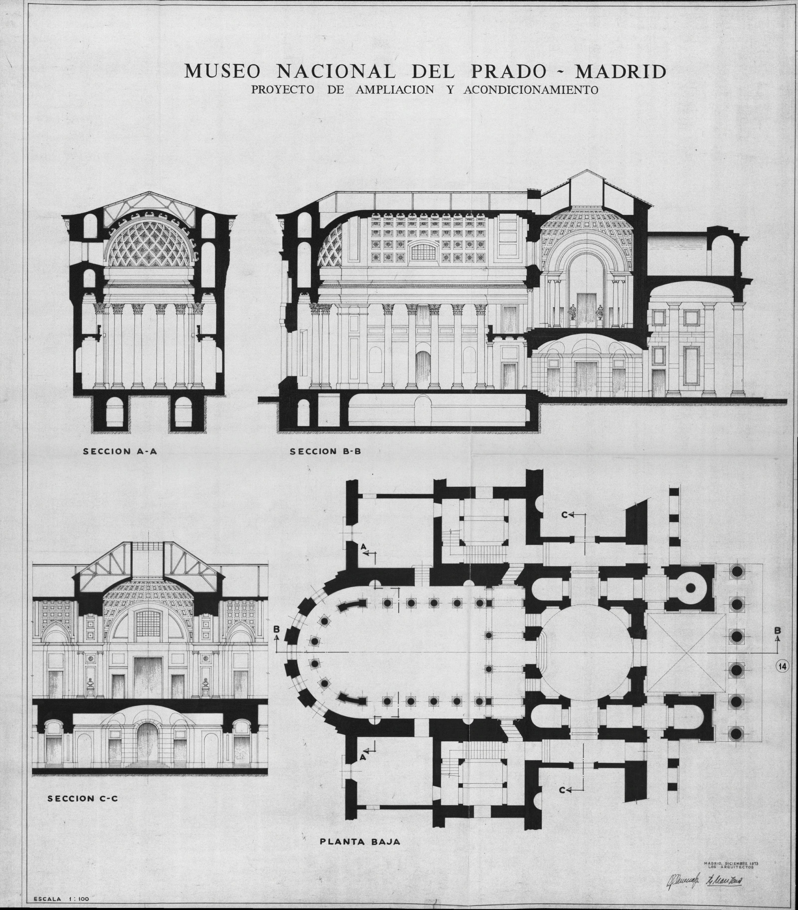 MUSEO NACIONAL DEL PRADO: PLANTA BAJA, SECCIONES A-A, B-B, C-C
