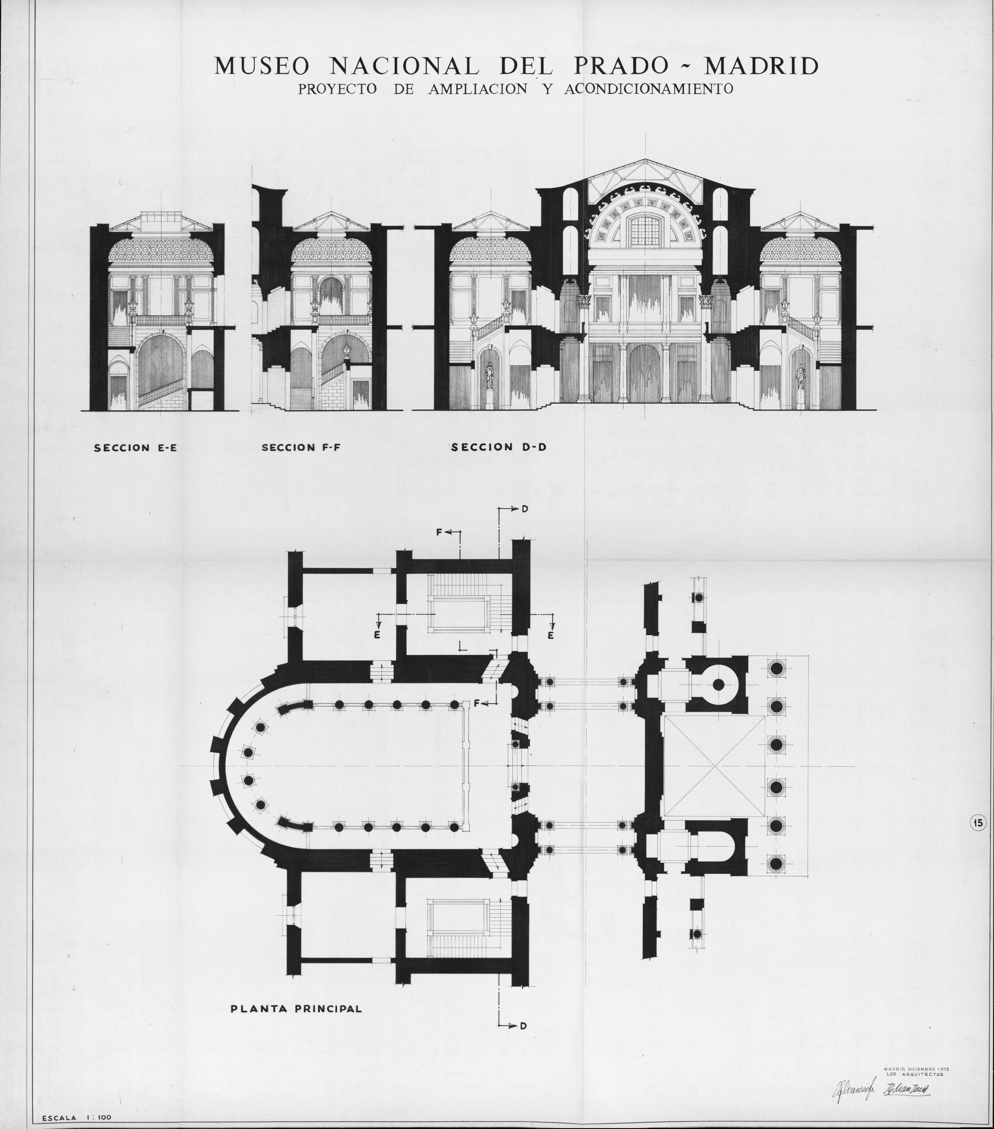 MUSEO NACIONAL DEL PRADO: PLANTA PRINCIPAL. SECCIONES E-E, F-F