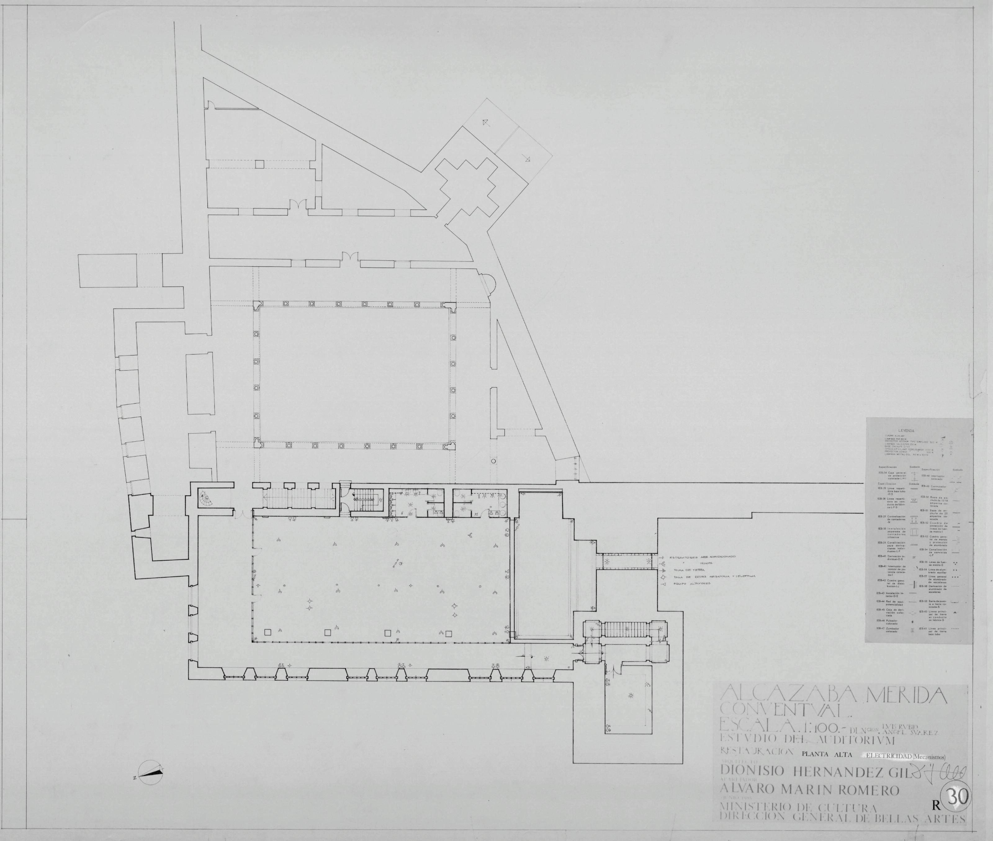ALCAZABA DE MERIDA (Badajoz) Estudio del Auditorium: PLANTA ALTA - Restauración - ELECTRICIDAD - Mecanismos Con Leyendas. Firmado