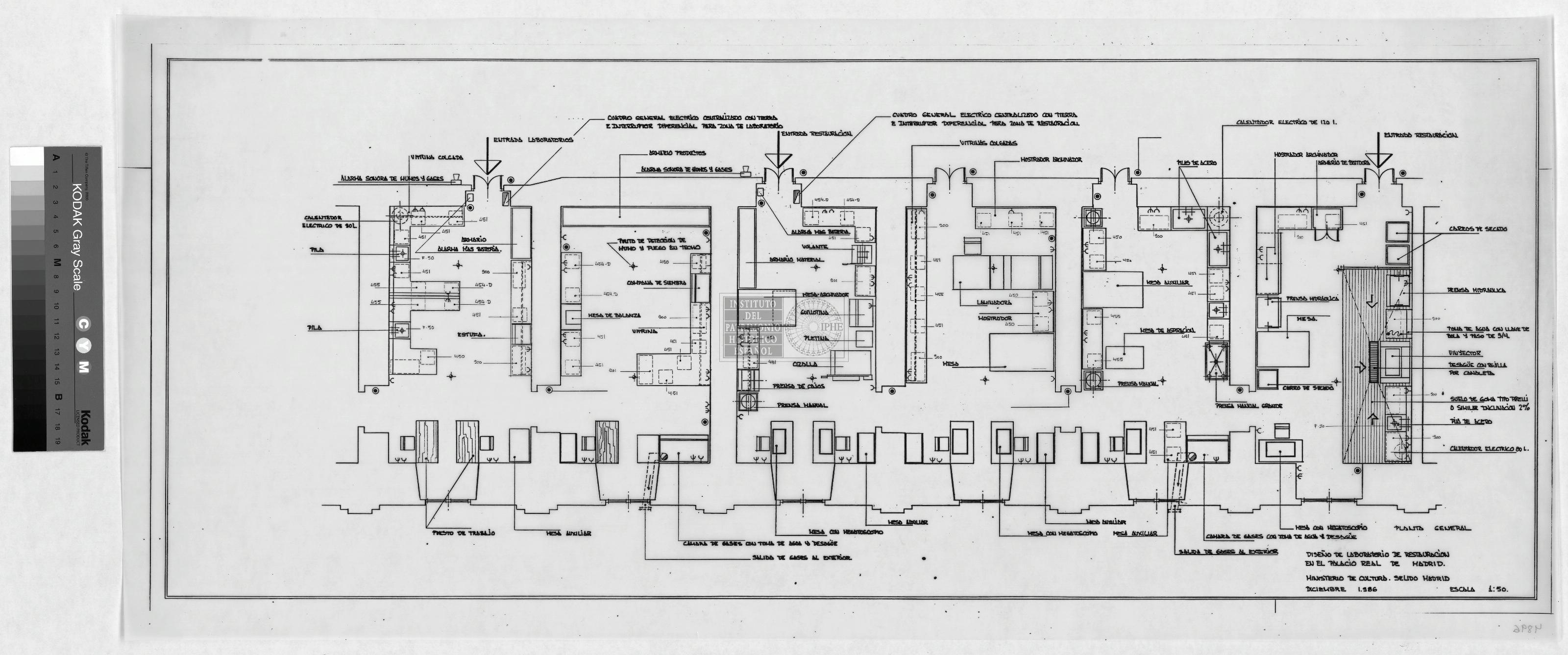 LABORATORIO DE RESTAURACION. PALACIO REAL DE MADRID: PLANTA GENERAL, ELECTRICIDAD, VENTILACION