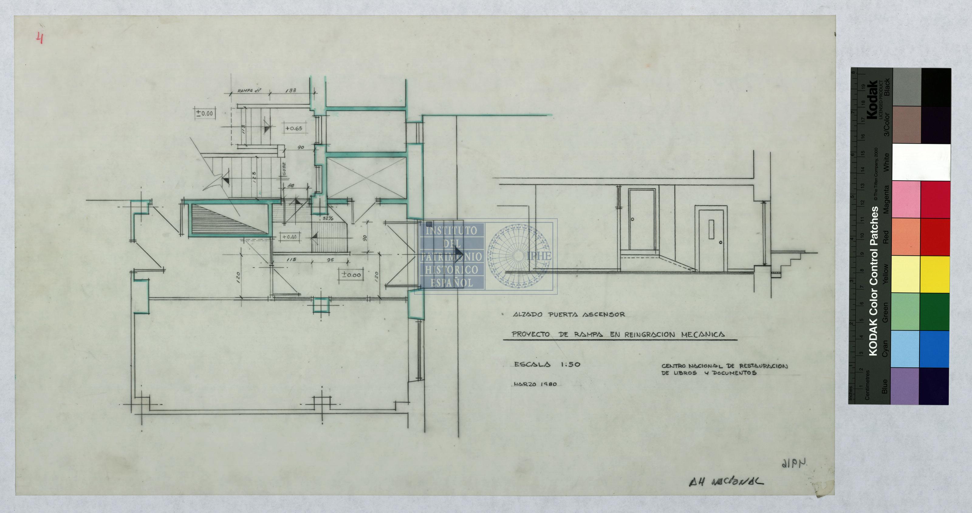 ARCHIVO HISTORICO NACIONAL: ALZADO PUERTA ASCENSOR. PROYECTO RAMPA EN REINGRACION MECANICA