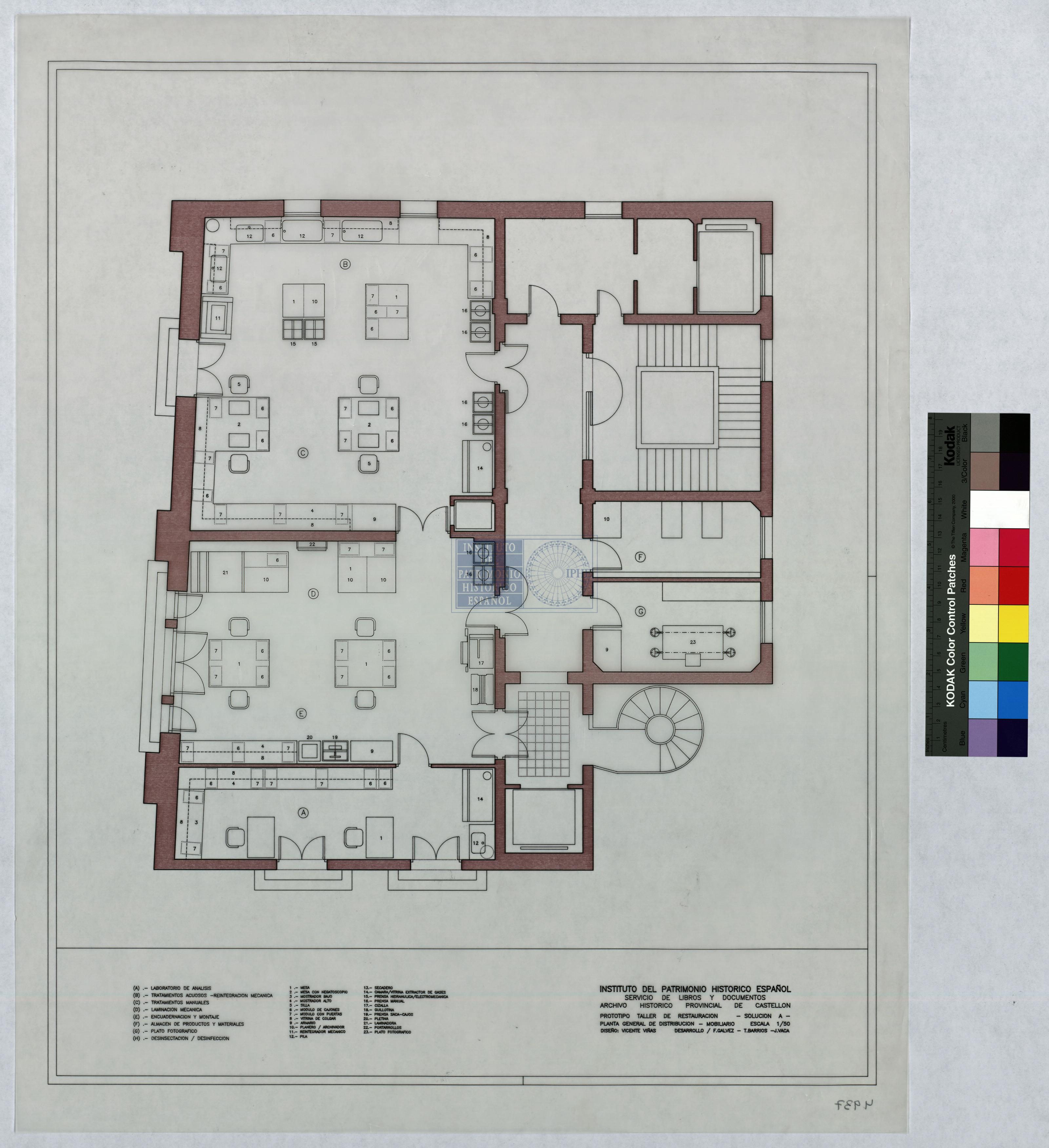 ARCHIVO HISTORICO PROVINCIAL DE CASTELLON.: PROTIPO TALLER DE RESTAURACION. SOLUCION A-PLANTA GENERAL DE DISTRIBUCION.