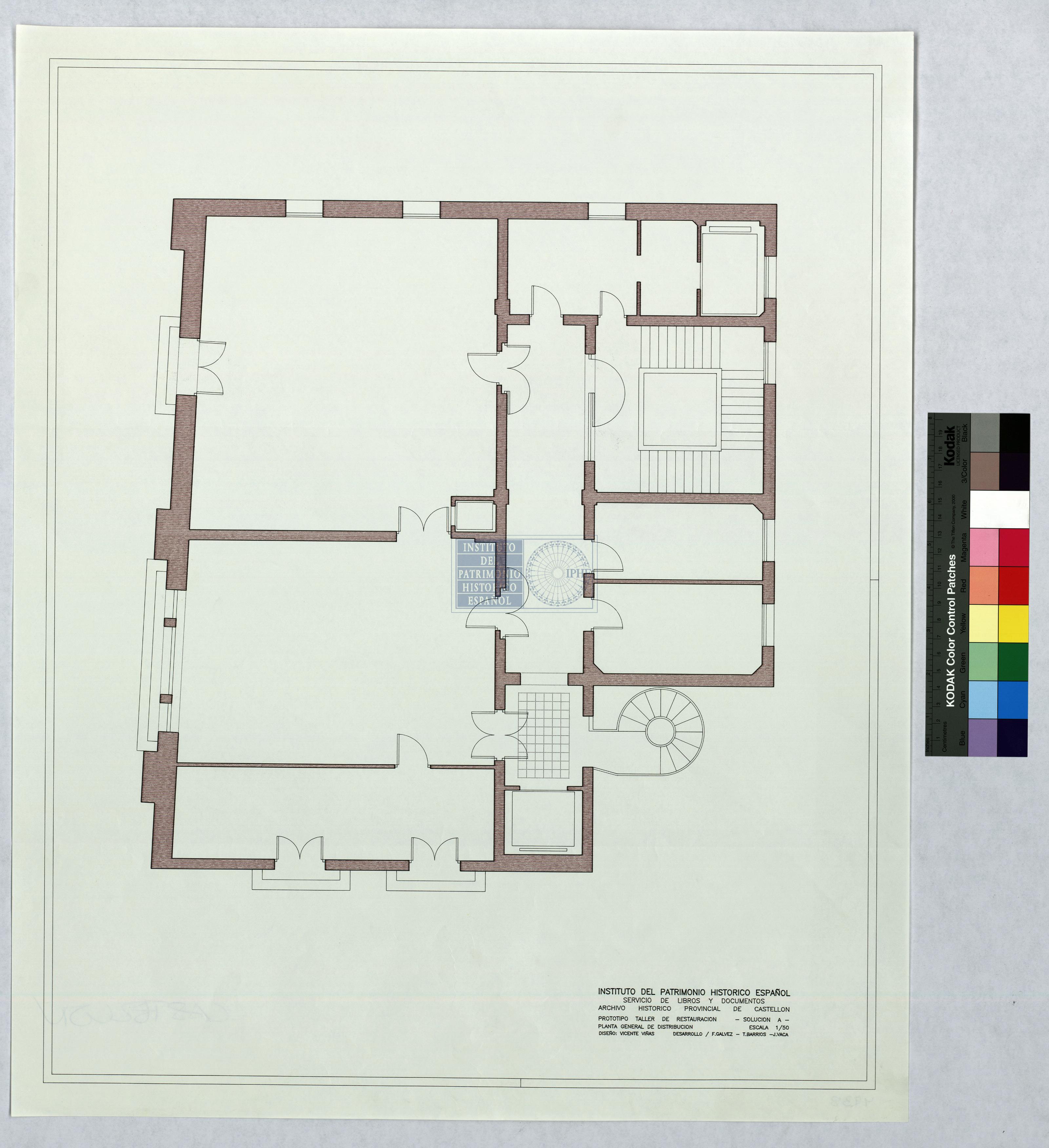 ARCHIVO HISTORICO PROVINCIAL DE CASTELLON.: PROTIPO TALLER DE RESTAURACION. SOLUCION A-PLANTA GENERAL DE DISTRIBUCION.