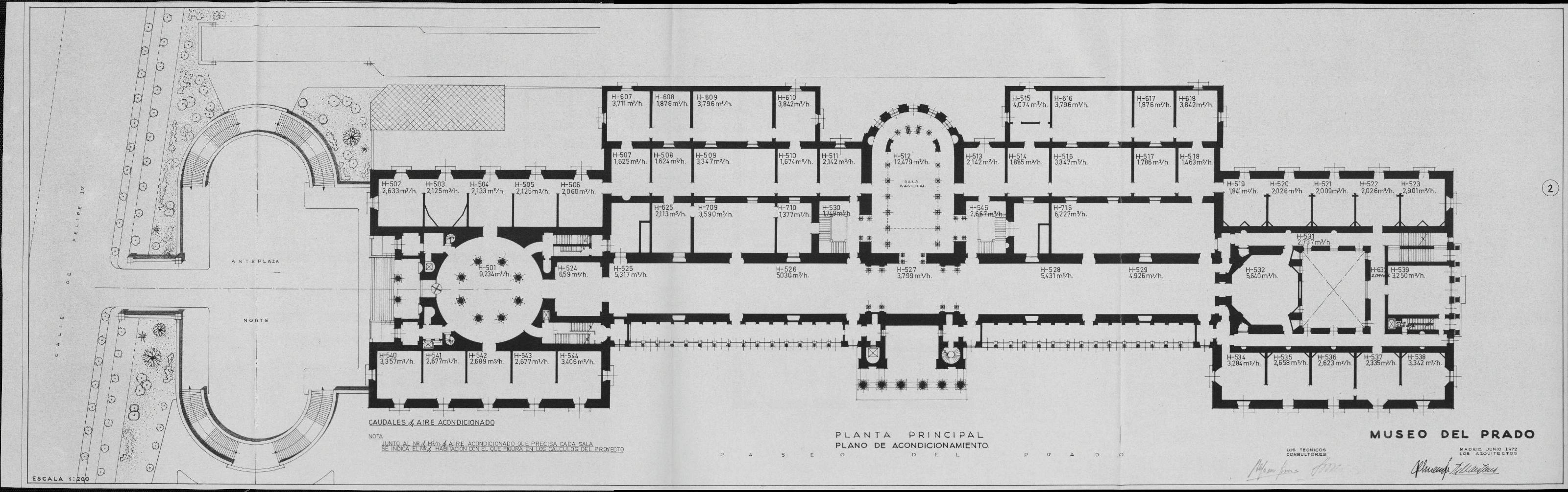 MUSEO NACIONAL DEL PRADO: PLANTA PRINCIPAL. PLANO DE ACONDICIONAMIENTO