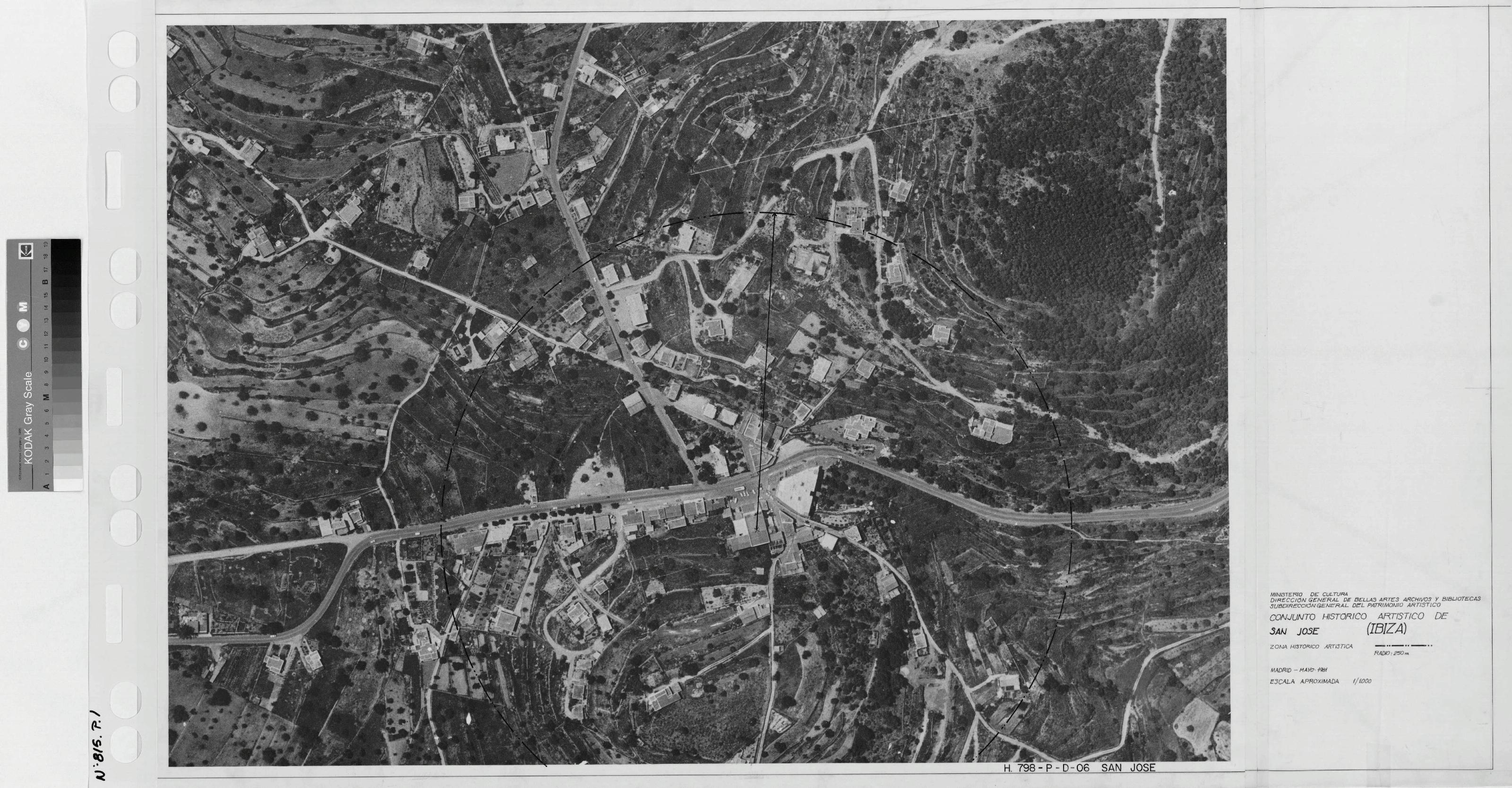 CONJUNTO HISTORICO ARTISTICO DE SAN JOSE -IBIZA-: VISTA AEREA. Este plano marca una zona historica artistica, en un radio de 250m.