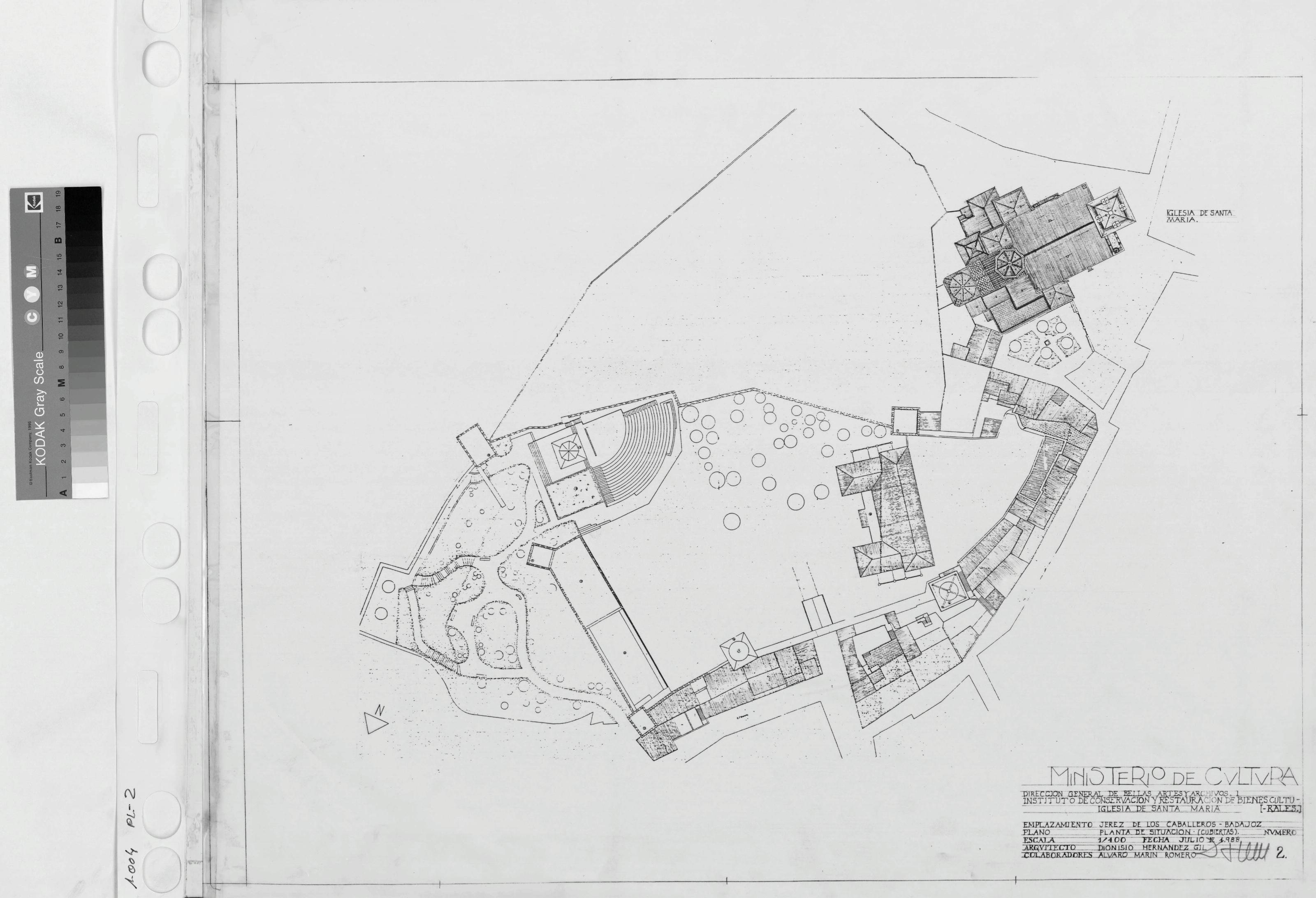 IGLESIA DE SANTA MARIA JEREZ DE LOS CABALLEROS (Badajoz): PLANTA GENERAL DE SITUACION - CUBIERTAS Igual que el anterior pero con vista del conjunto de cubiertas. Firmado