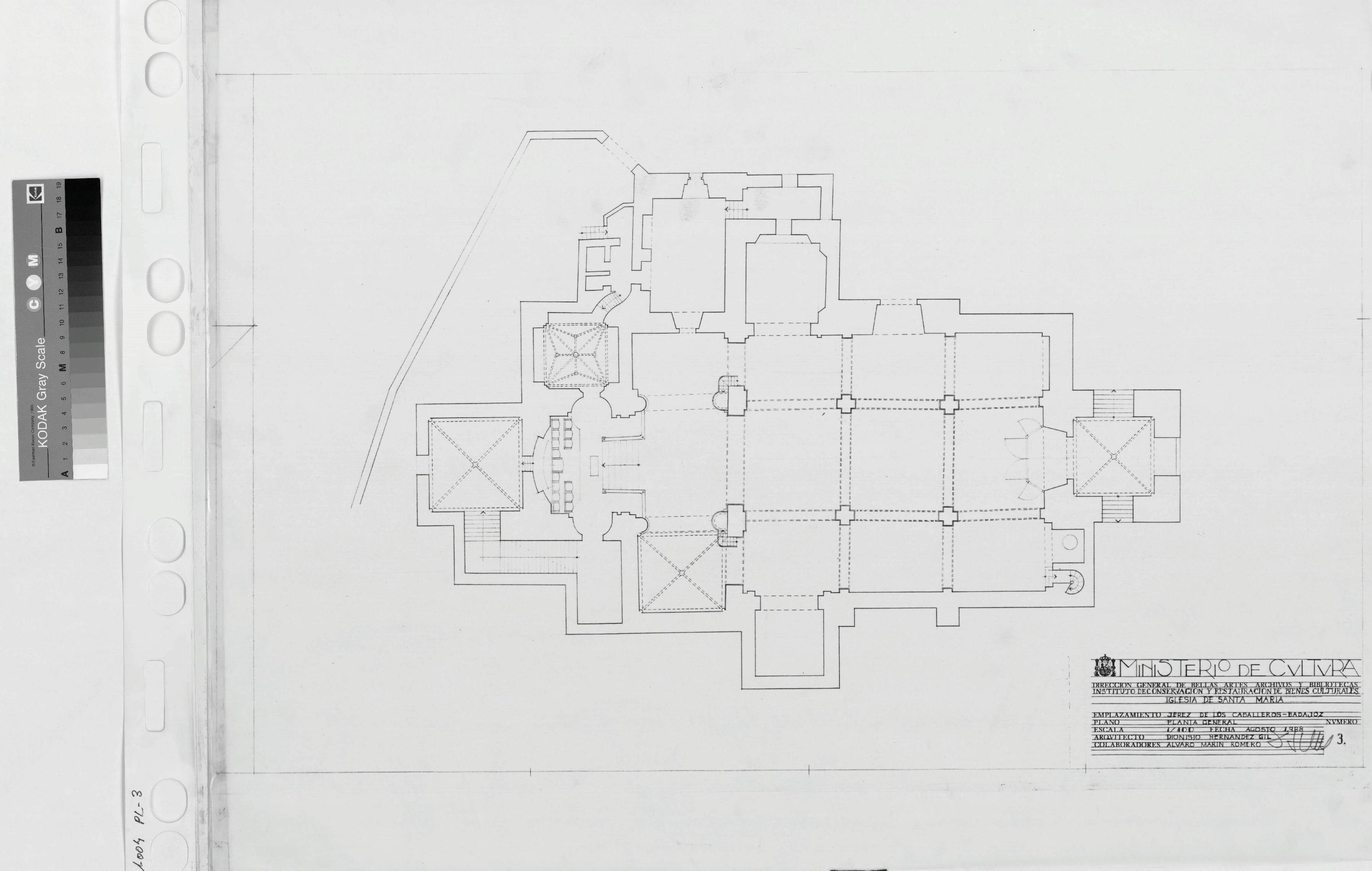 IGLESIA DE SANTA MARIA JEREZ DE LOS CABALLEROS (Badajoz): PLANTA GENERAL DE IGLESIA Con proyección de arcos y bóvedas sin cotas ni notas. Firmado