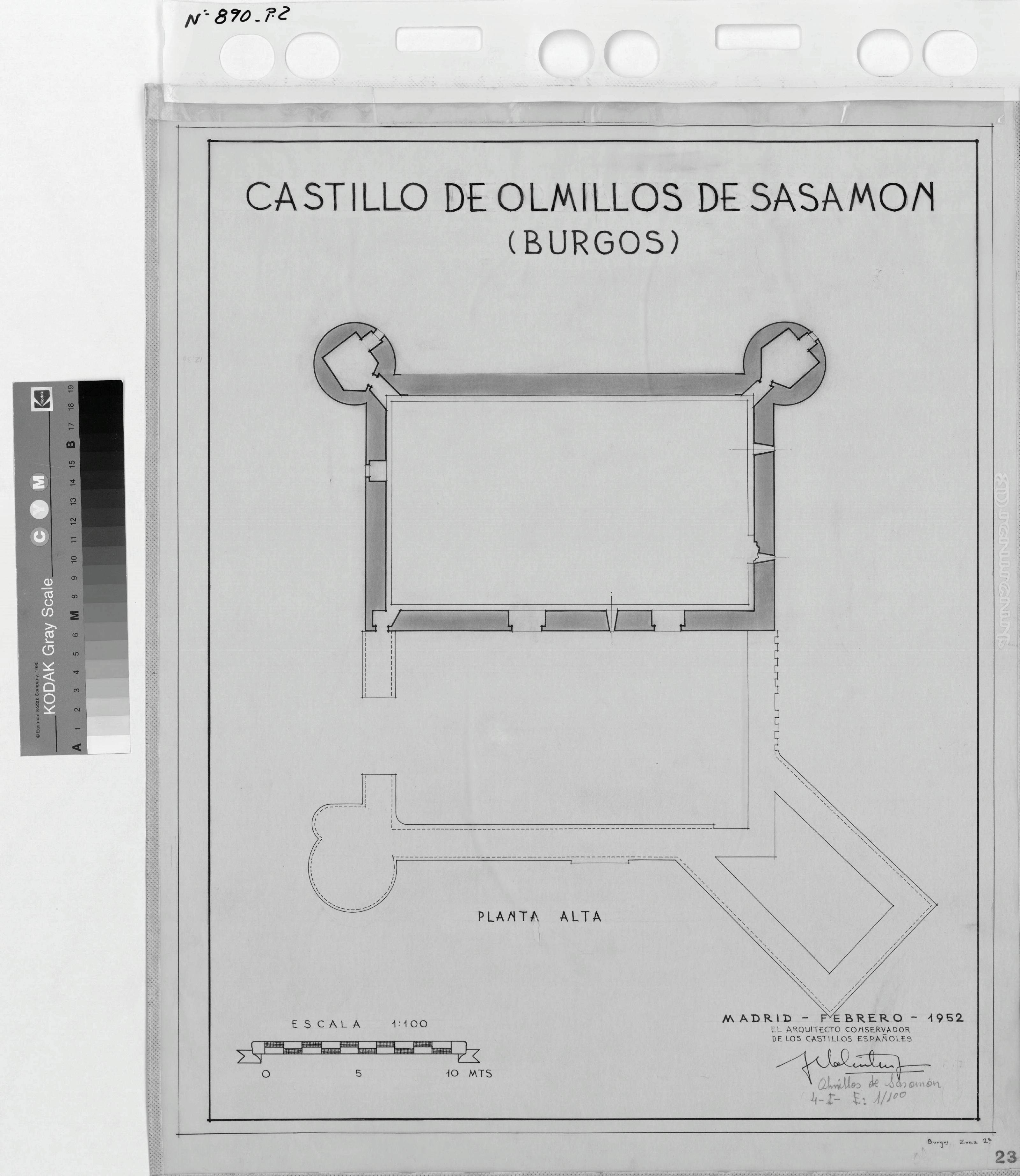 CASTILLO DE OLMILLOS DE SASAMON.- BURGOS -: PLANTA ALTA. Planta alta con los muros regruesados y coloreados, plano sin cotas
