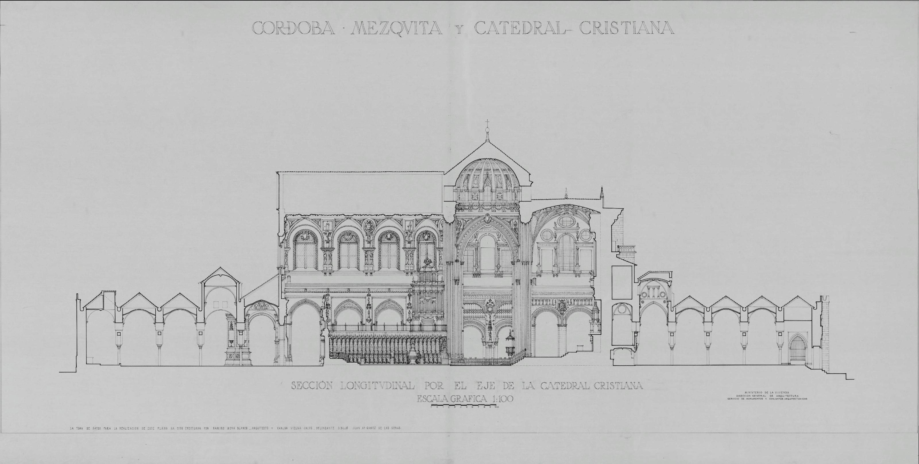 MEZQUITA IGLESIA CATEDRAL DE LA ASUNCION DE NUESTRA SEÑORA CORDOBA: SECCION LONGITUDINAL POR EL EJE DE LA CATEDRAL CRISTIANA