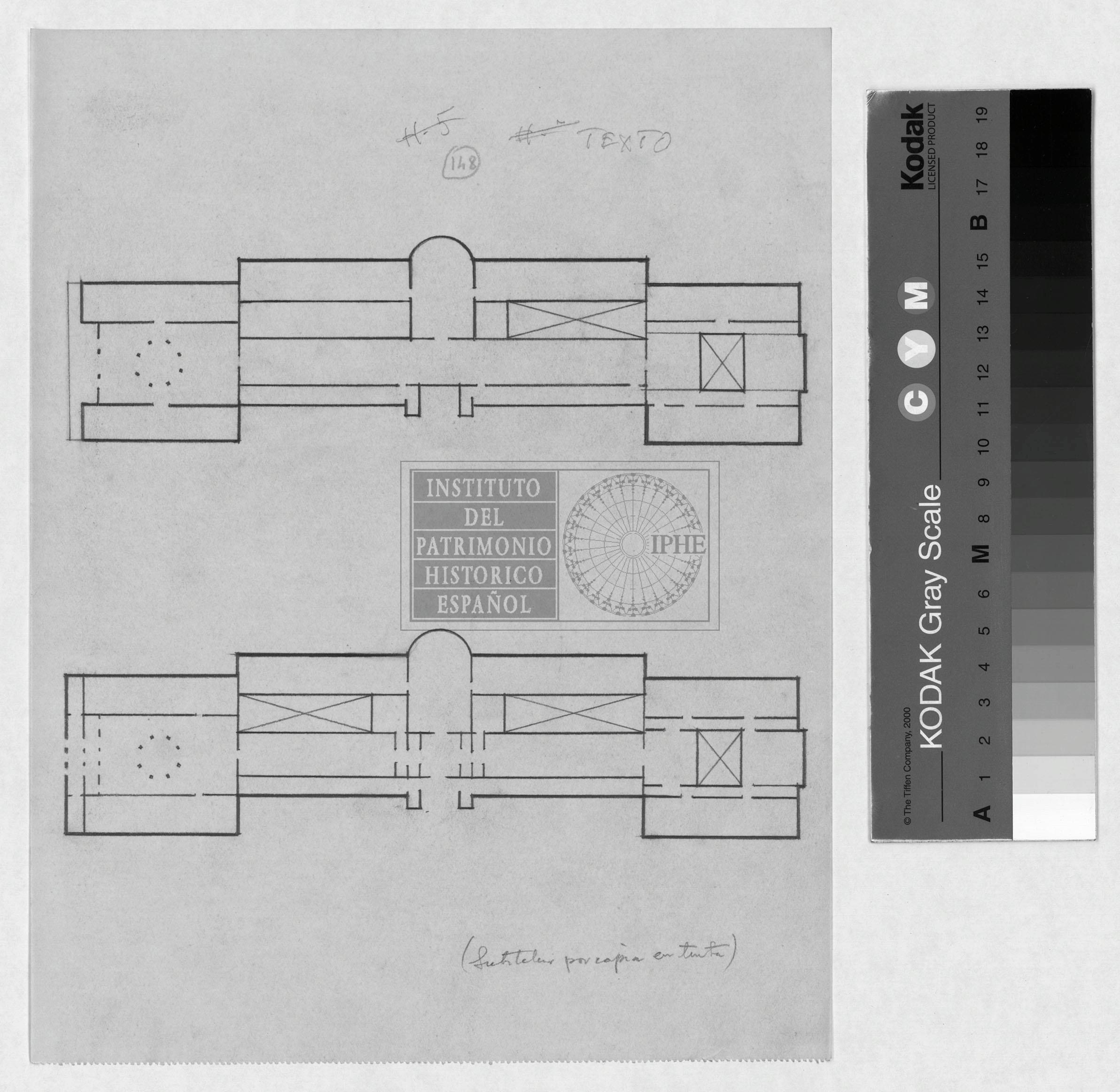 Plantas del Museo del Prado.: (Fotocopia) Primeras ampliaciones (esquemas). Planta principal y planta baja. [148] (28x21,7 cm). Procedente de la Donación José Lino Vaamonde Horcada (2001, 1ª entrega). Actualmente ubicado en Archivador 42.4. de la FIA.