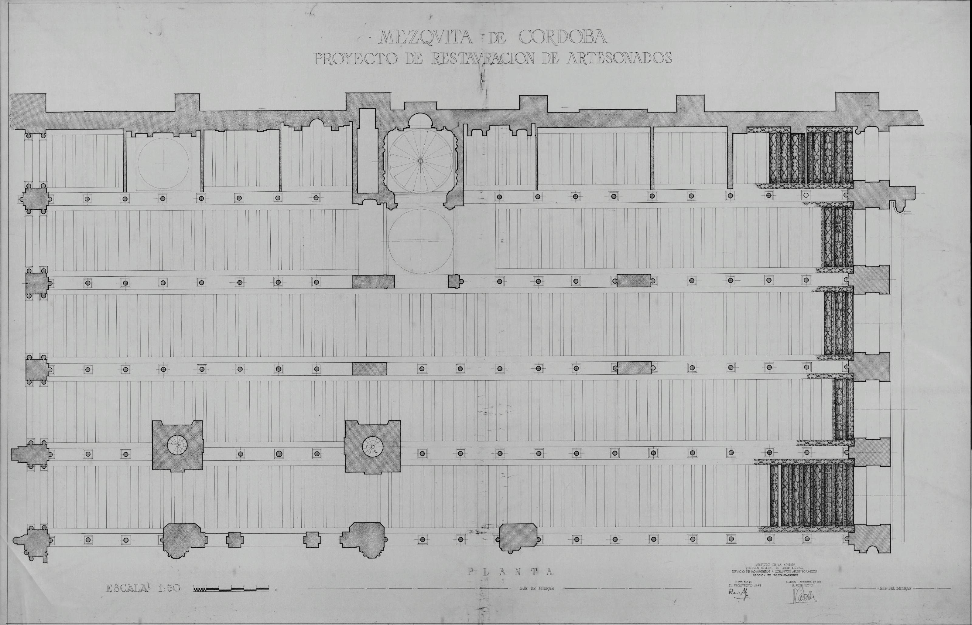 MEZQUITA IGLESIA CATEDRAL DE LA ASUNCION DE NUESTRA SEÑORA CORDOBA: PLANTA GENERAL A PARTIR DEL EJE DEL MIHRAB