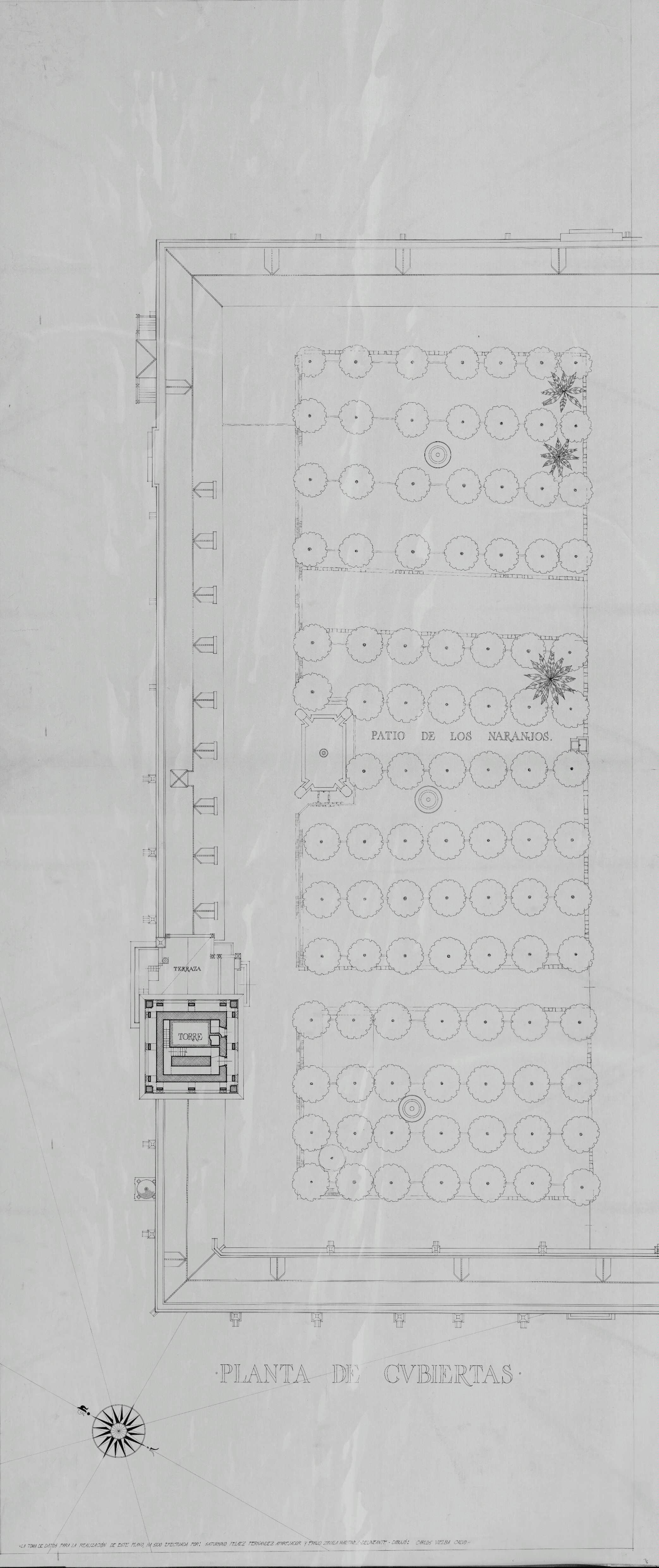 MEZQUITA IGLESIA CATEDRAL DE LA ASUNCION DE NUESTRA SEÑORA CORDOBA: PLANTA DE CUBIERTAS CORRESPONDIENTE AL PERIMETRO DEL PATIO DE LOS NARANJOS