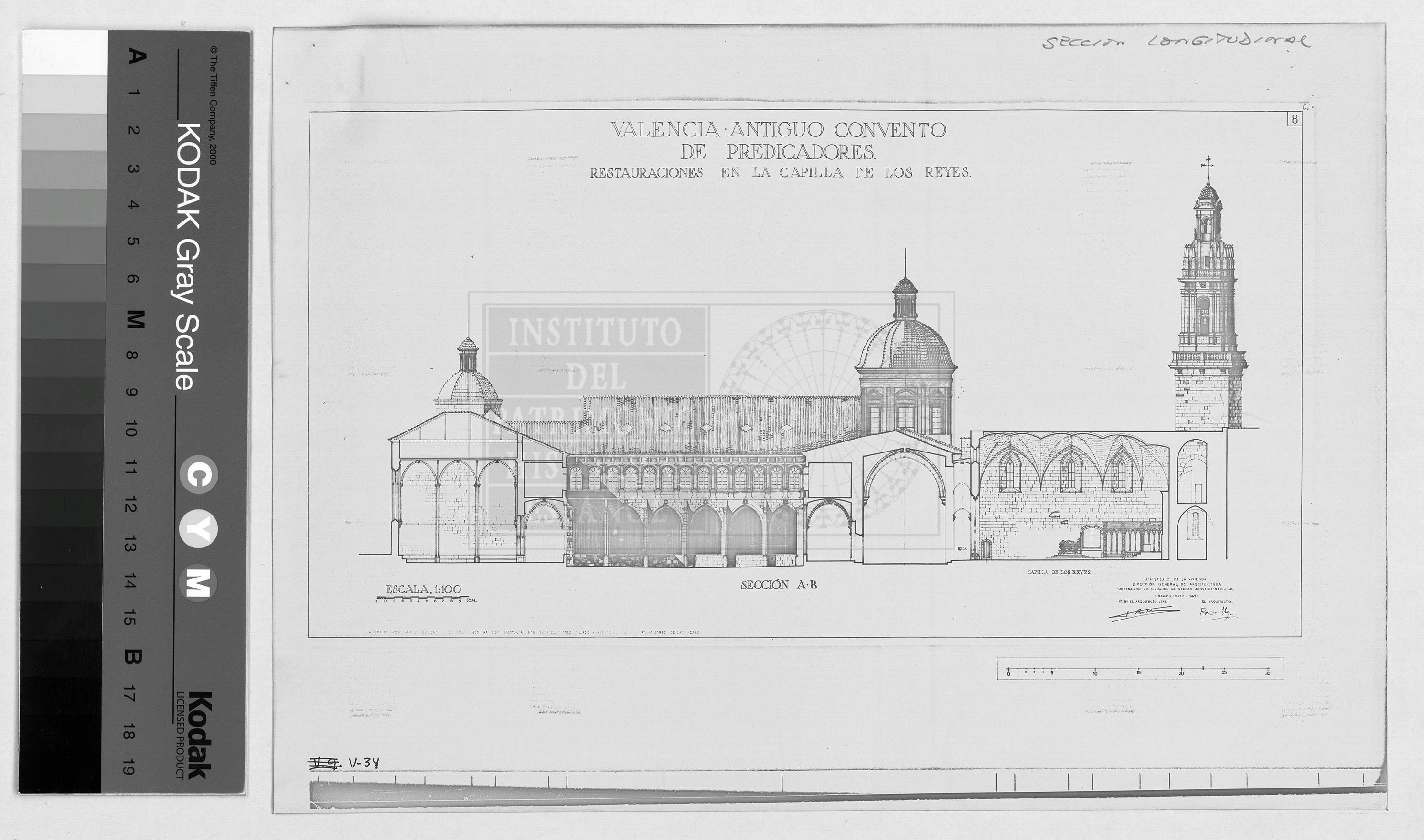 ANTIGUO CONVENTO PREDICADORES.: ALZADO. SECCIÓN A-B. RESTAURACIÓN CAPILLA DE LOS REYES
