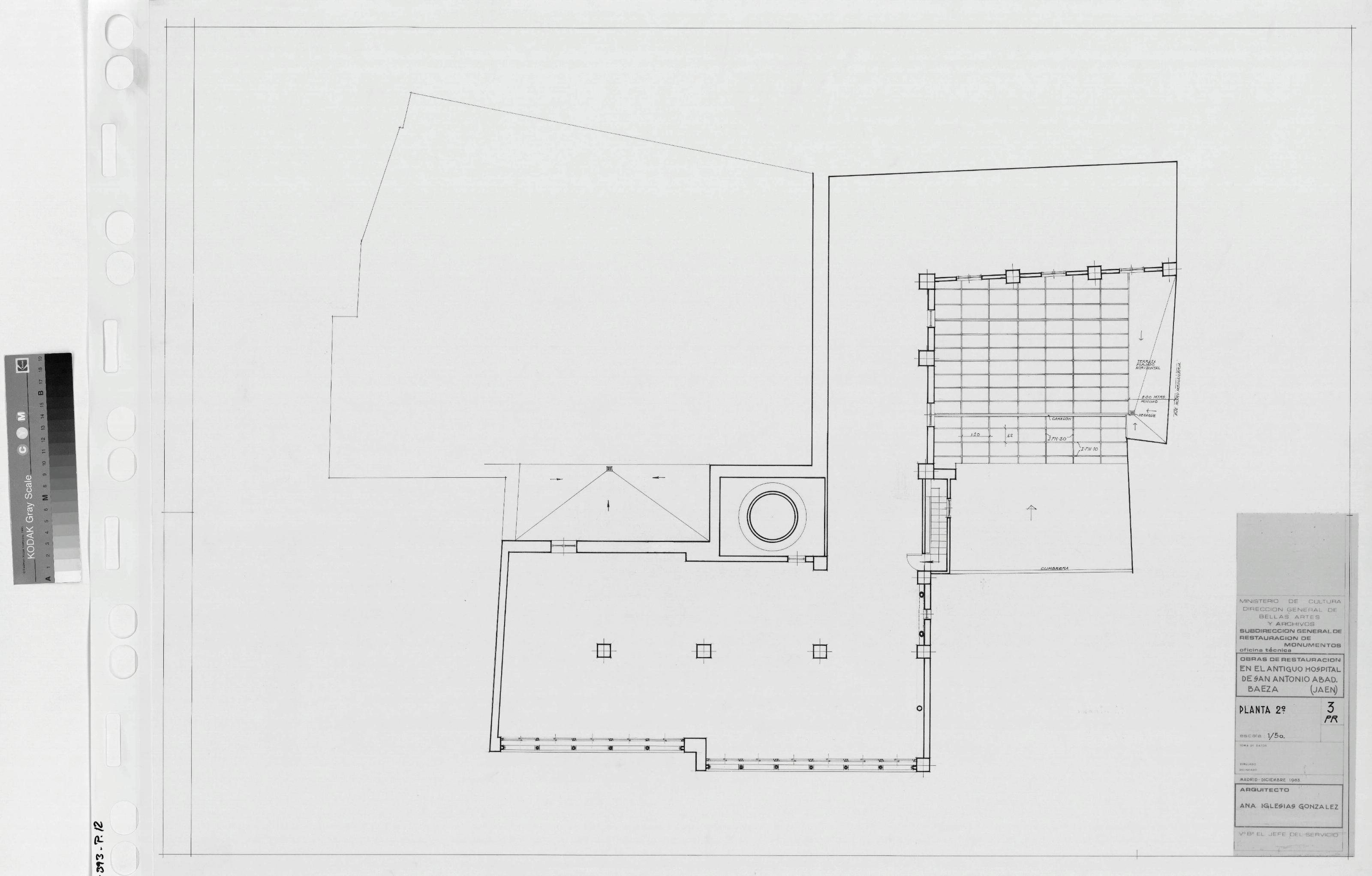 HOSPITAL DE SAN ANTONIO ABAD. BAEZA.: PLANTA SEGUNDA proyecto, señala una parte de la formacion y desagües de cubierta, plano sin cotas.