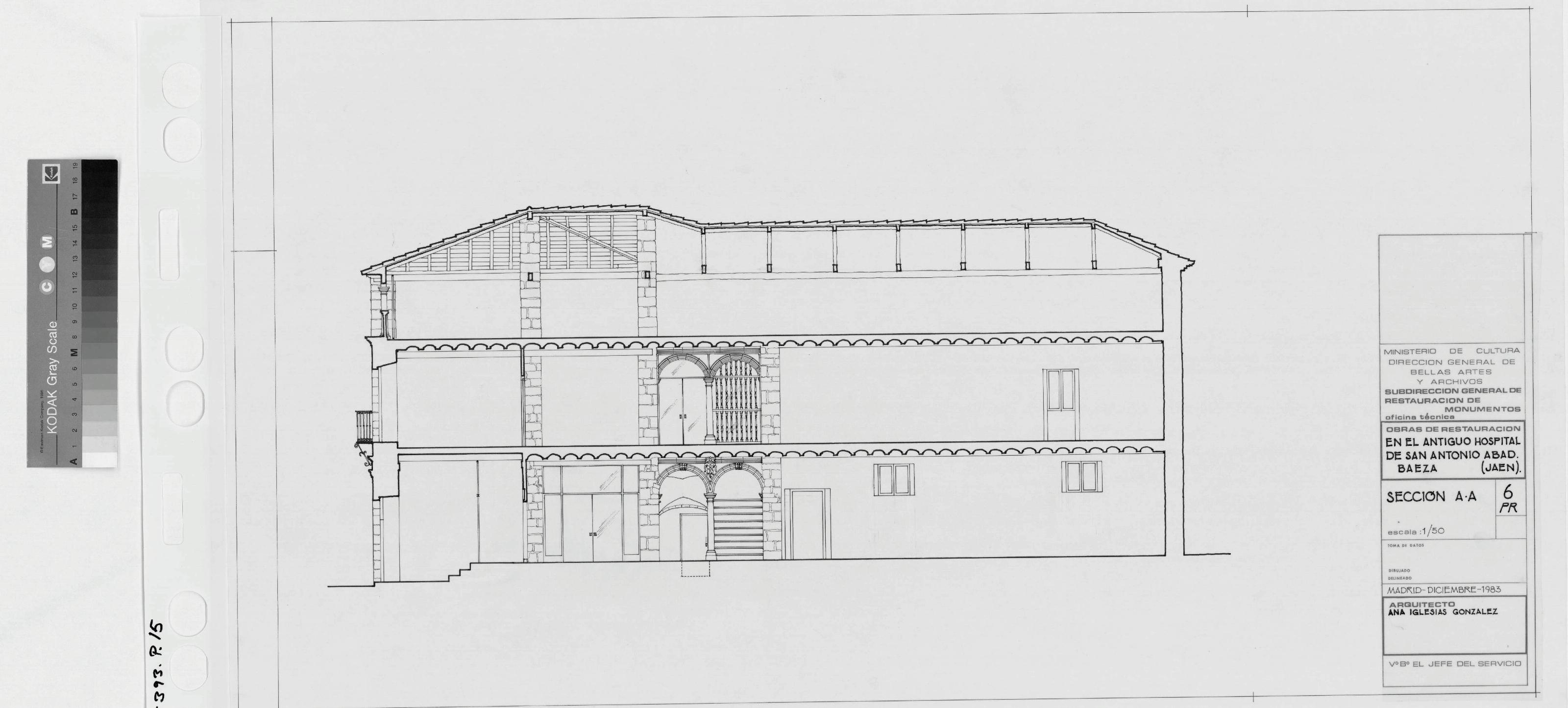 HOSPITAL DE SAN ANTONIO ABAD. BAEZA.: SECCION A-A, Plano dibujado con detalle, sin cotas.