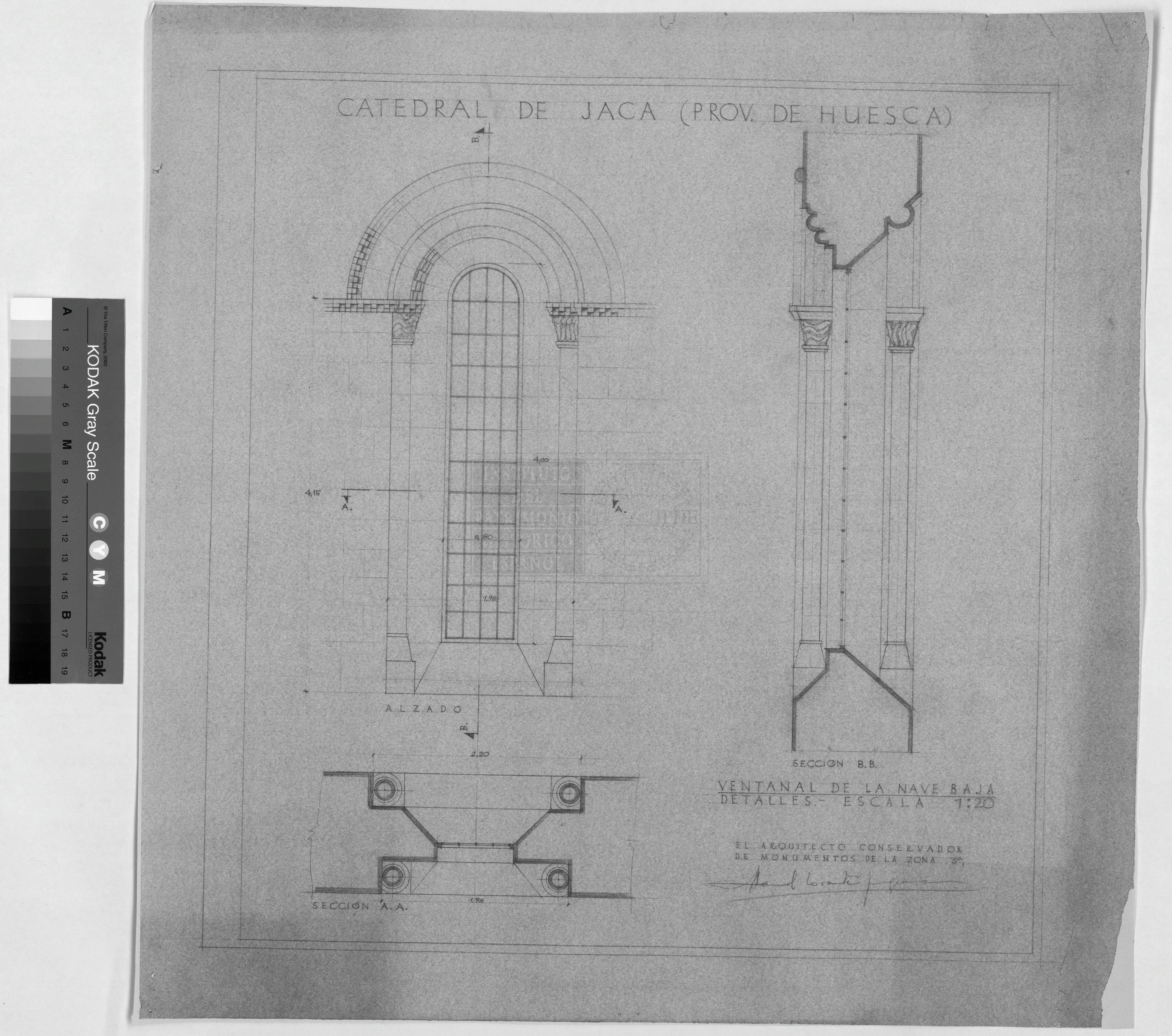 CATEDRAL: ALZADO SECCIÓN A-A, DETALLE VENTANAL DE LA NAVE BAJA