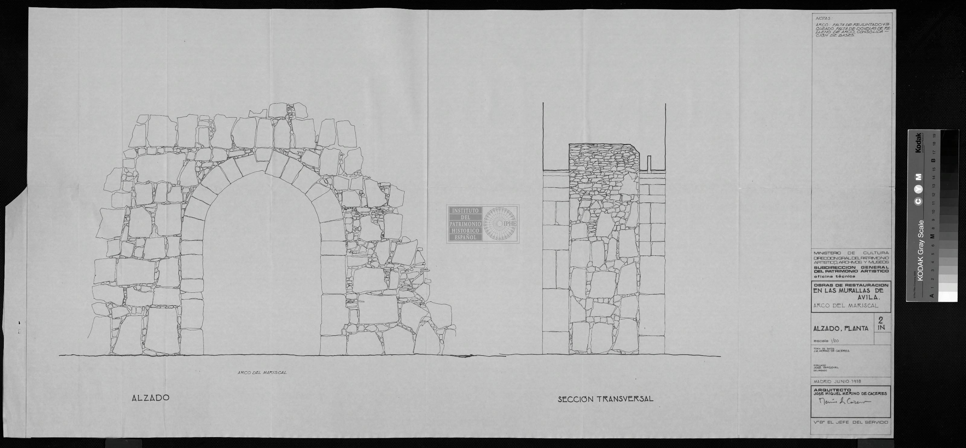 MURALLAS (ARCO MARISCAL): ALZADO, PLANTA, SECCIÓN