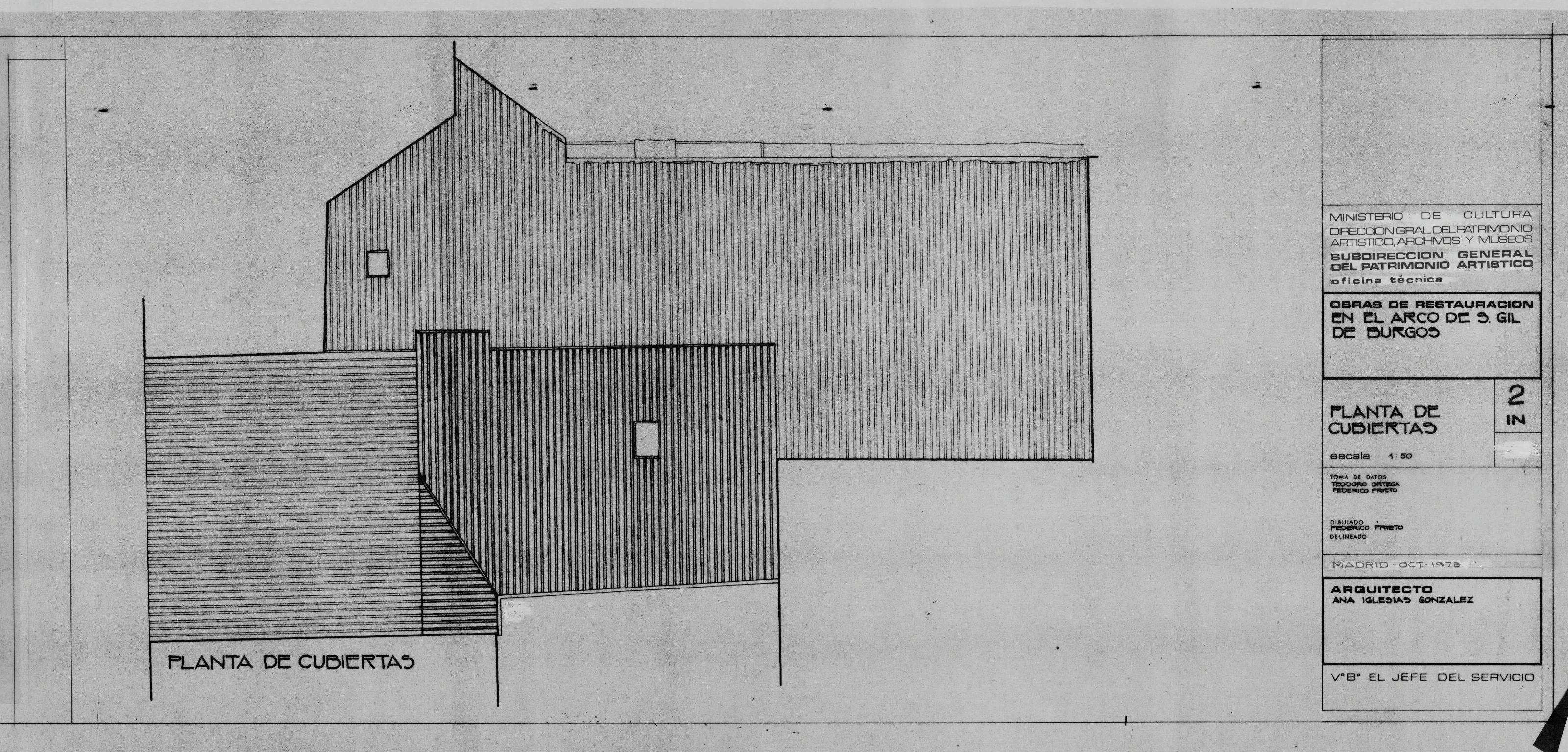 ARCO DE SAN GIL. -BURGOS-: PLANTA DE CUBIERTAS. Planos sin cotas,y sin mas documentacion.