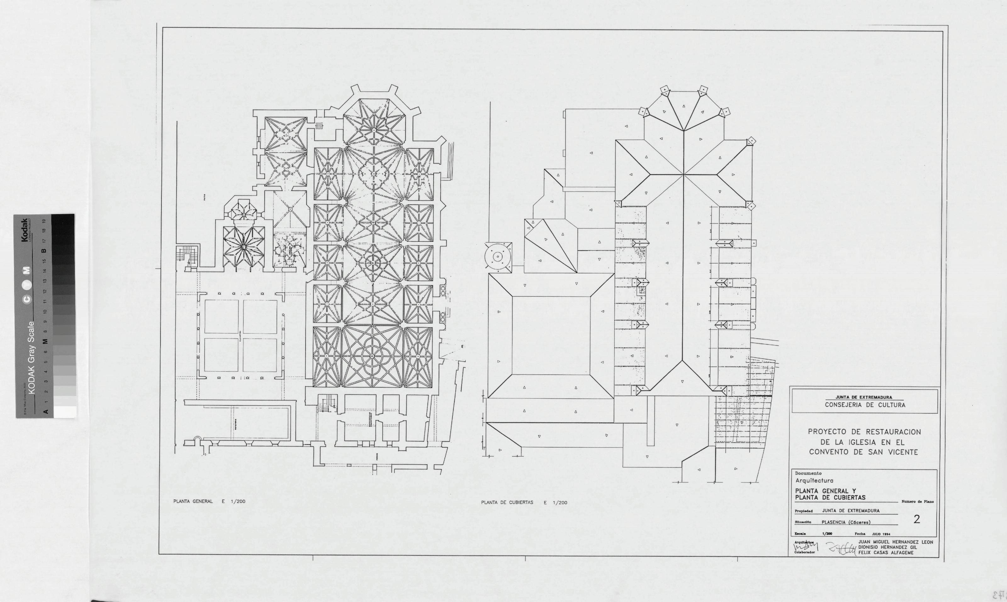 CONVENTO DE SAN VICENTE. IGLESIA: PLANTA GENERAL Y PLANTA DE CUBIERTAS