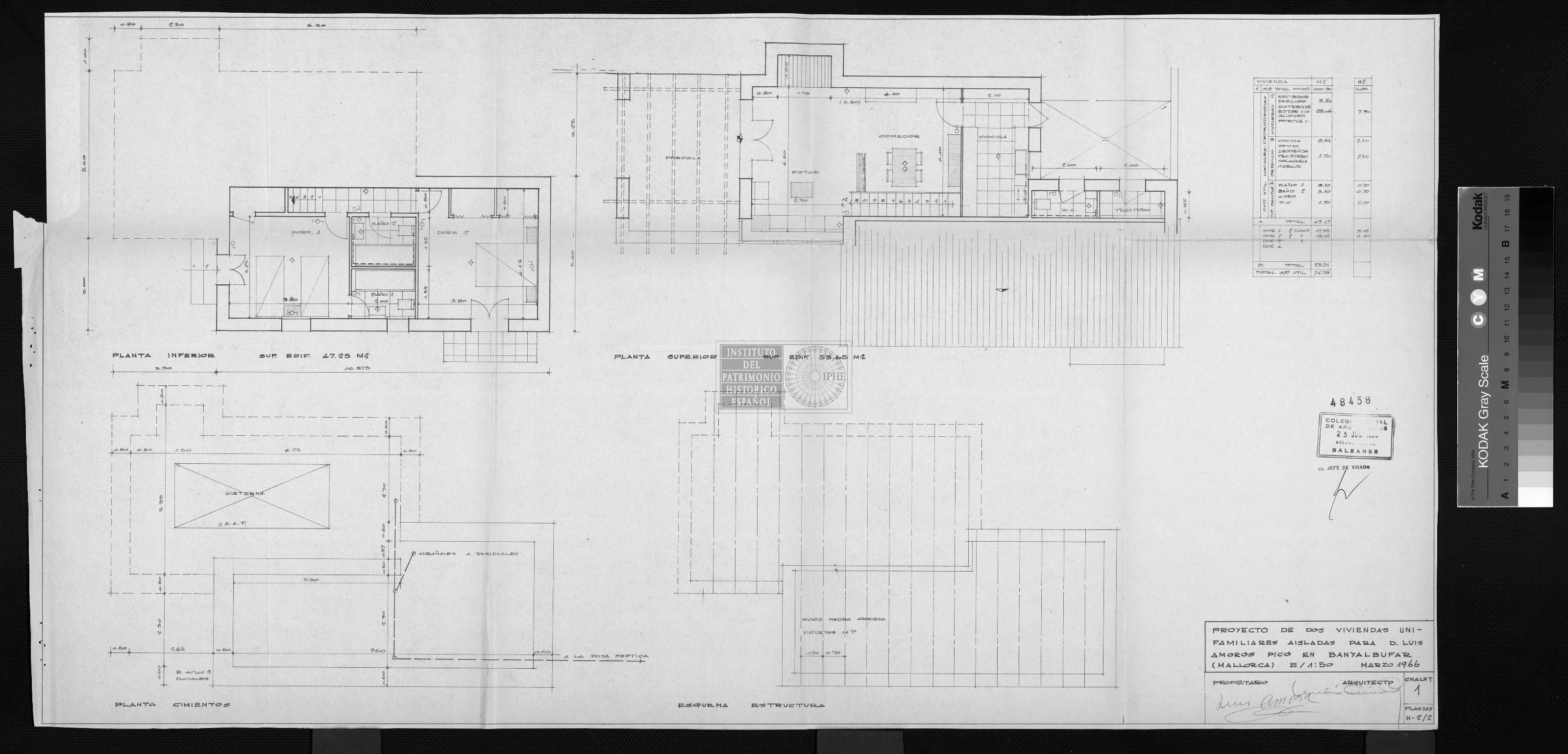 VIVIENDAS UNIFAMILIARES: PLANTAS, ESQUEMA ESTRUCTURA (Caja 166)
