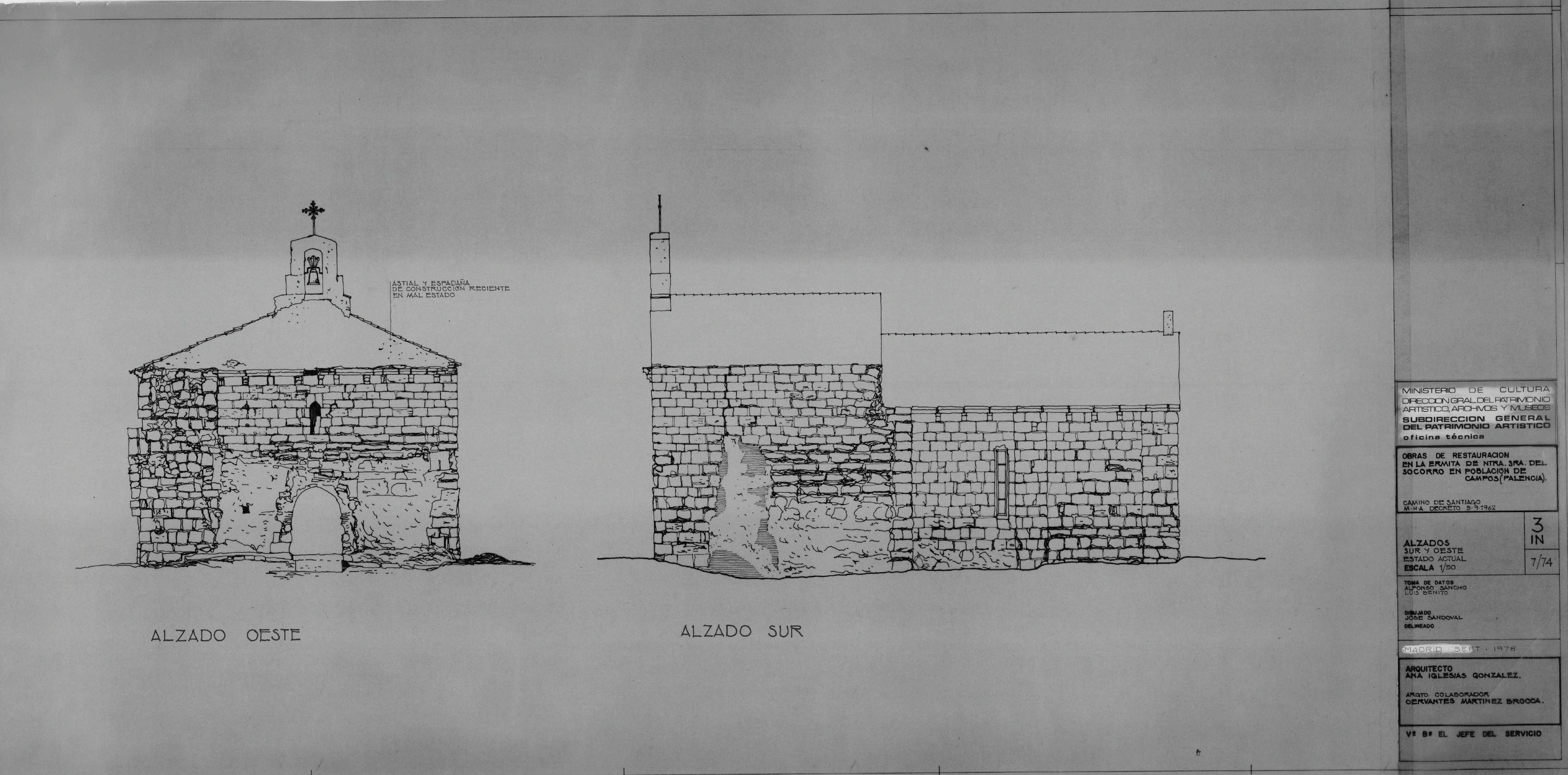 ERMITA DE NUESTRA SEÑORA DEL SOCORRO POBLACION DE CAMPOS PALENCIA: ALZADOS SUR Y OESTE ESTADO ACTUAL