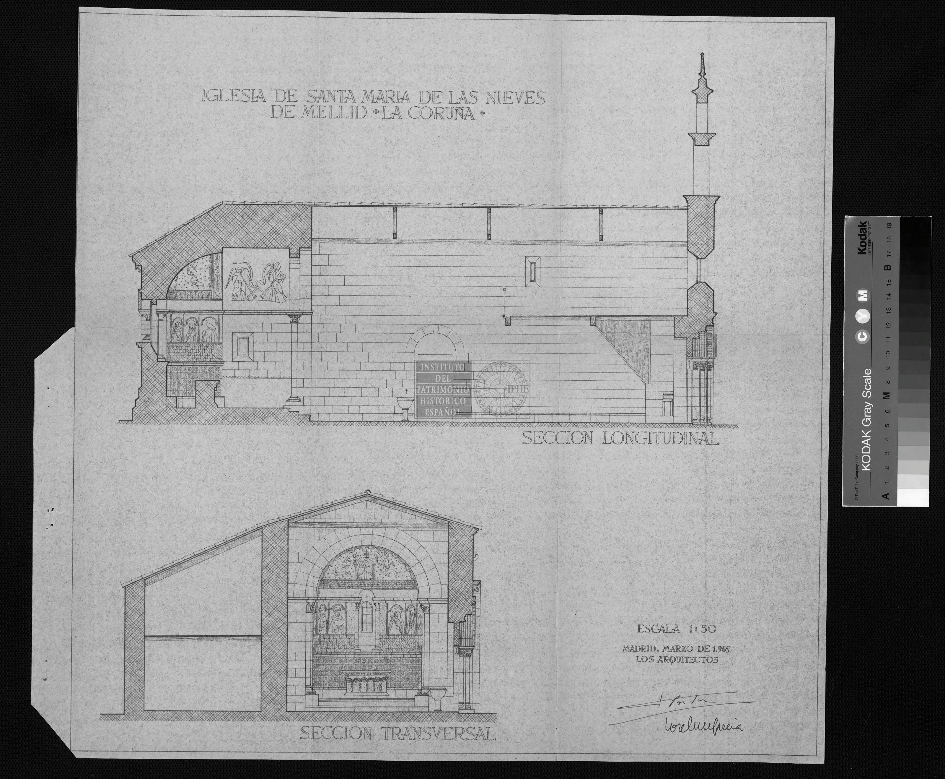 IGLESIA DE SANTA MARIA DE LA NIEVES: SECCION LONGITUDINAL Y TRANSVERSAL