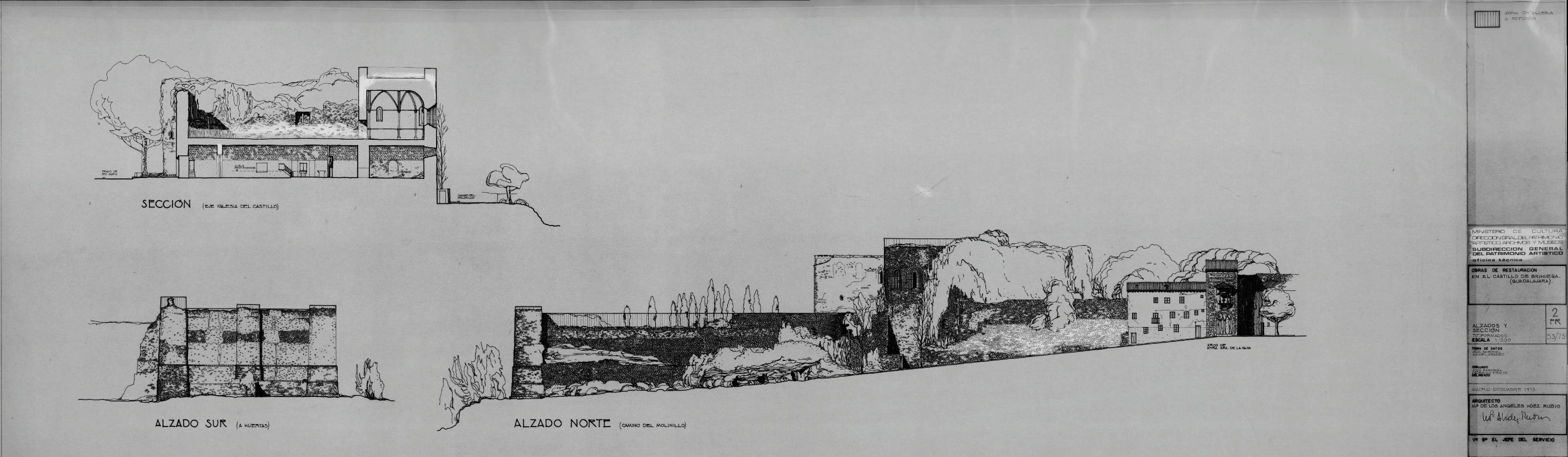 CASTILLO DE BRIHUEGA - GUADALAJARA-: CASTILLO DE BRIHUEGA, Alzados y seccion , planos reformados,sin acotar.