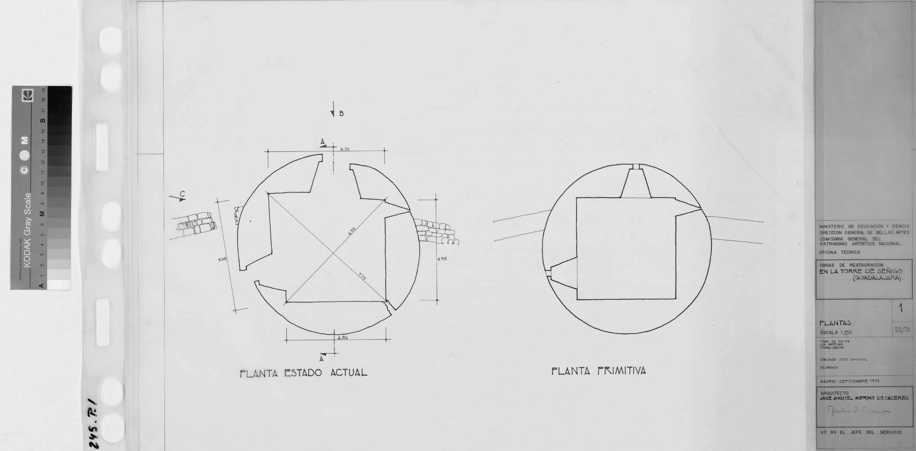 TORRE DE SEÑIGO. - GUADALAJARA-: PLANTAS; actual y primitiva, la planta actual esta acotada y marca dos secciones,