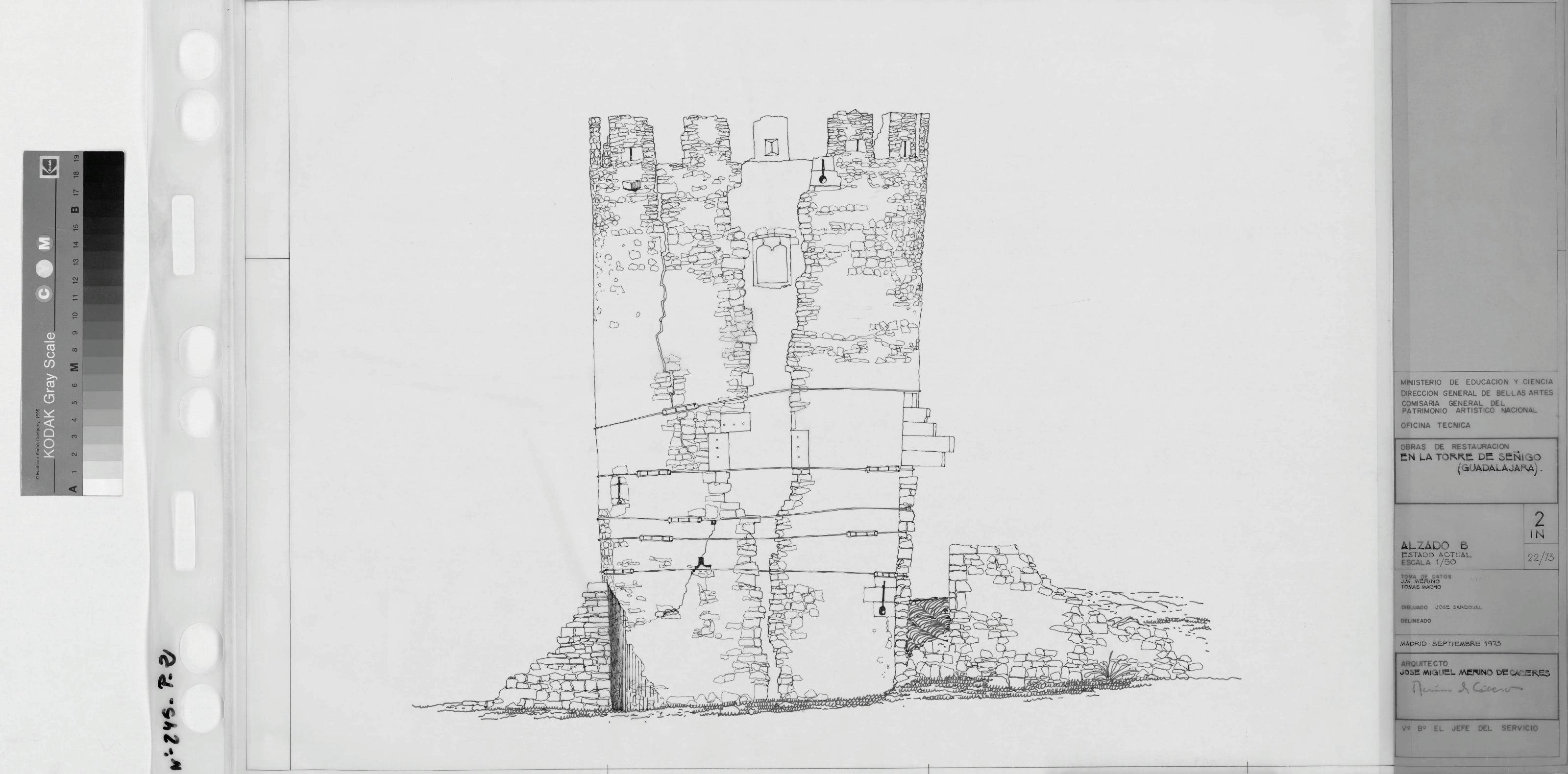 TORRE DE SEÑIGO. - GUADALAJARA-: ALZADO B. Estado actual, alzado dibujado , plano sin acotar.