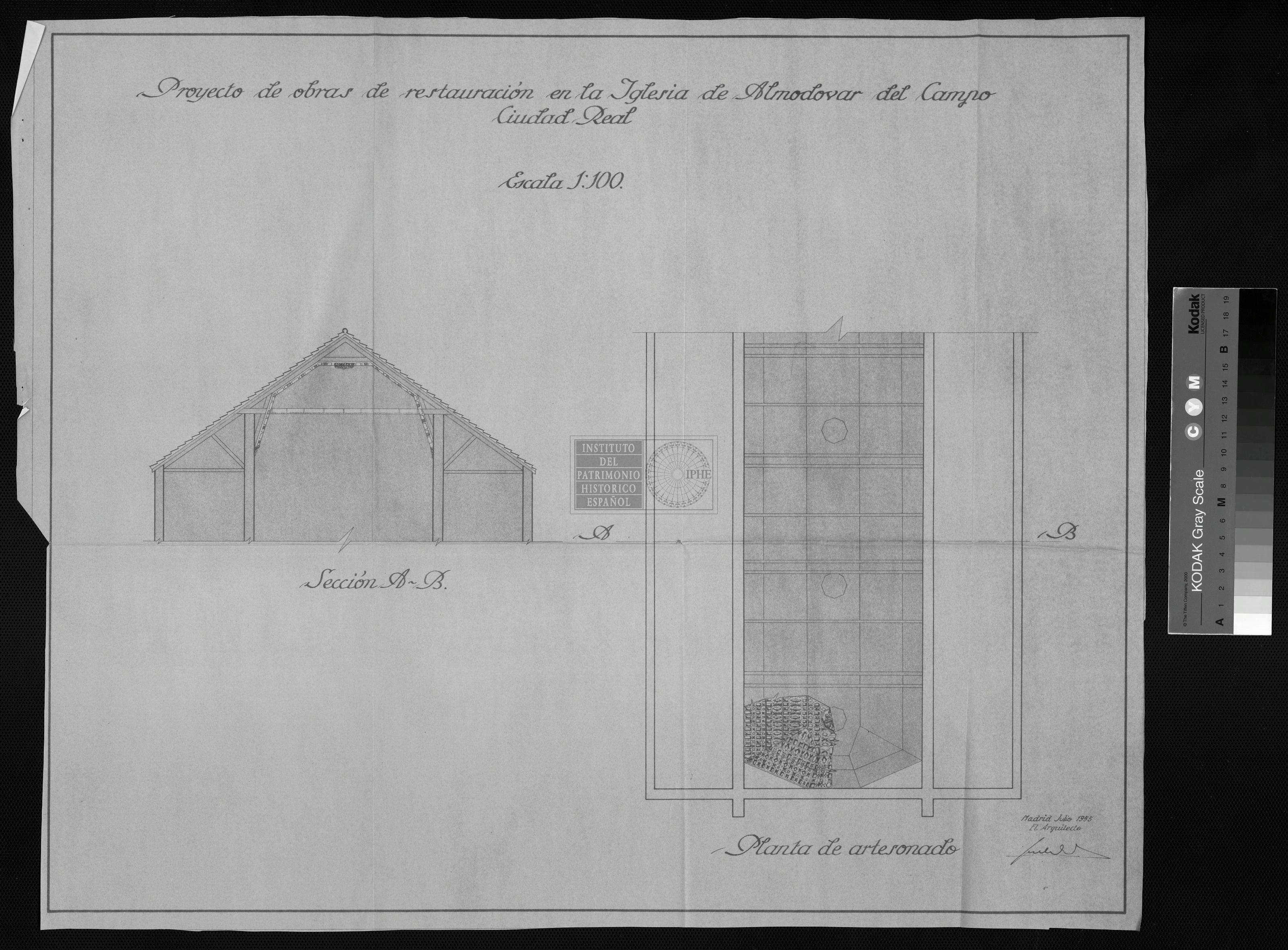 IGLESIA PARROQUIAL: PLANTA ARTESONADO, SECCION A-B (Caja 260)