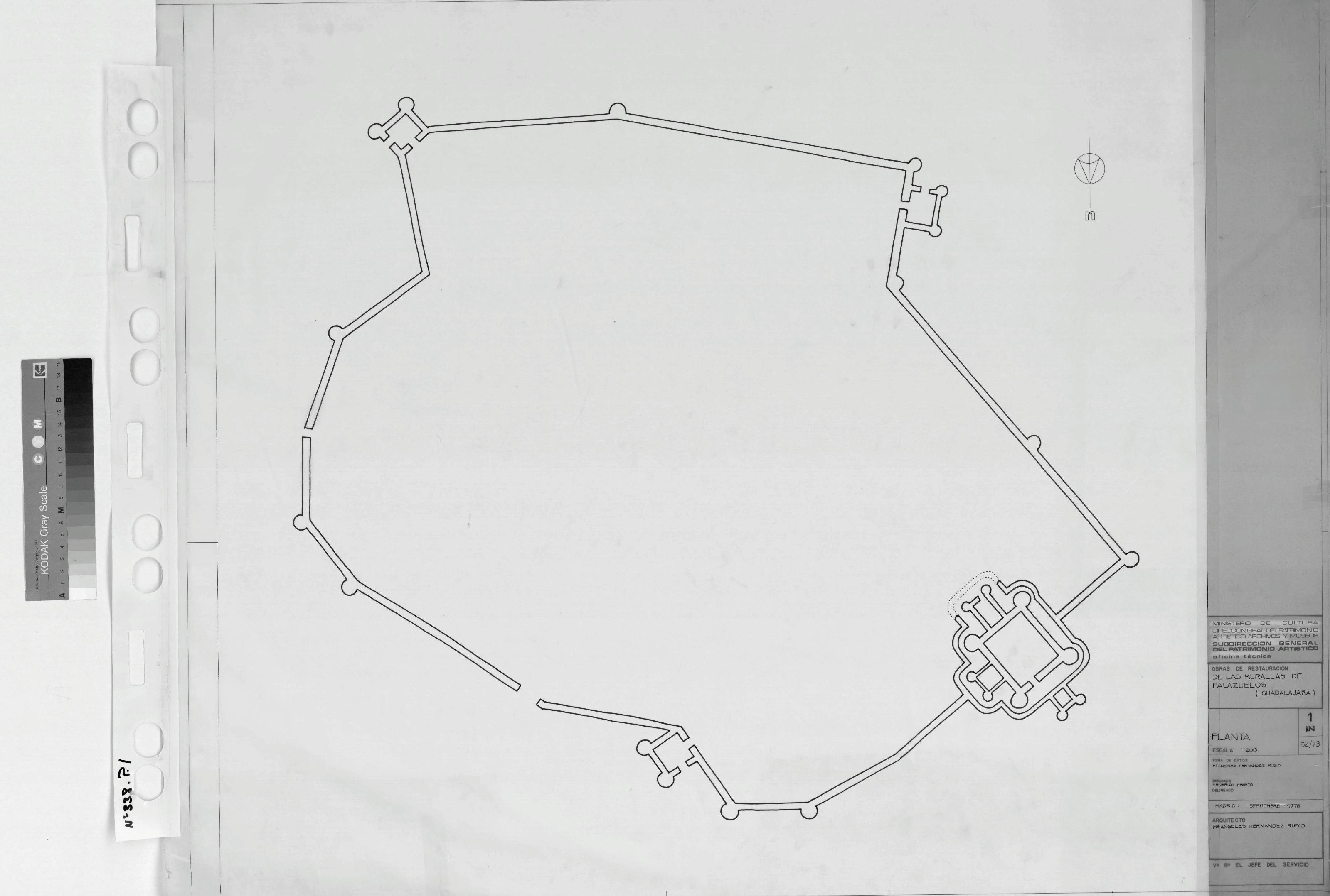 MURALLAS DE PALAZUELOS - GUADALAJARA-: MURALLAS DE PALAZUELOS, Planta general, toda la muralla aparece reguesada, plano sin cotas.