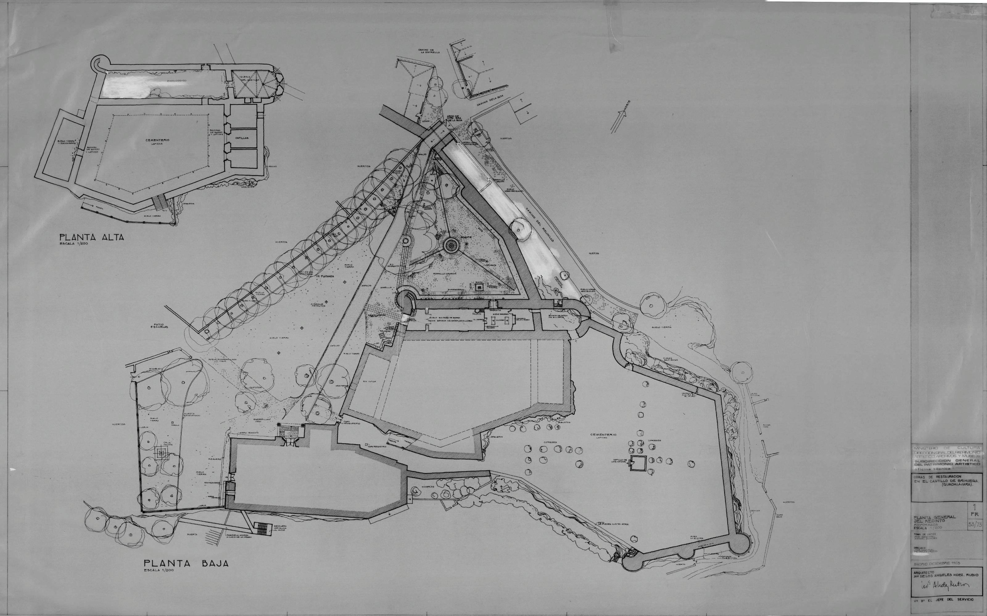 CASTILLO DE BRIHUEGA - GUADALAJARA-: CASTILLO DE BRIHUEGA, planta general del recinto, reformado, planta baja y alta, plano sin cotas.