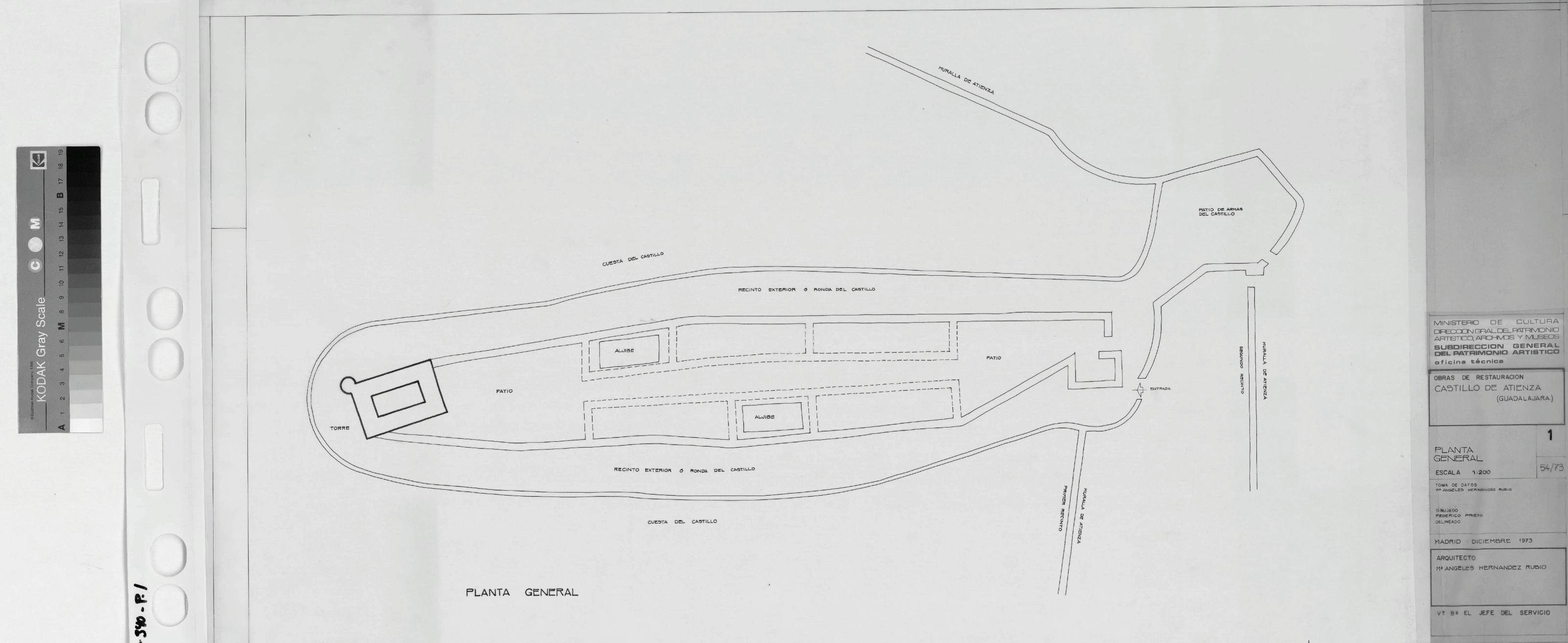 CASTILLO DE ATIENZA - GUADALAJARA-: PLANTA GENERAL. Plano del castillo , marca las zonas de los alrededores, y de algunas dependencias, plano sin cotas