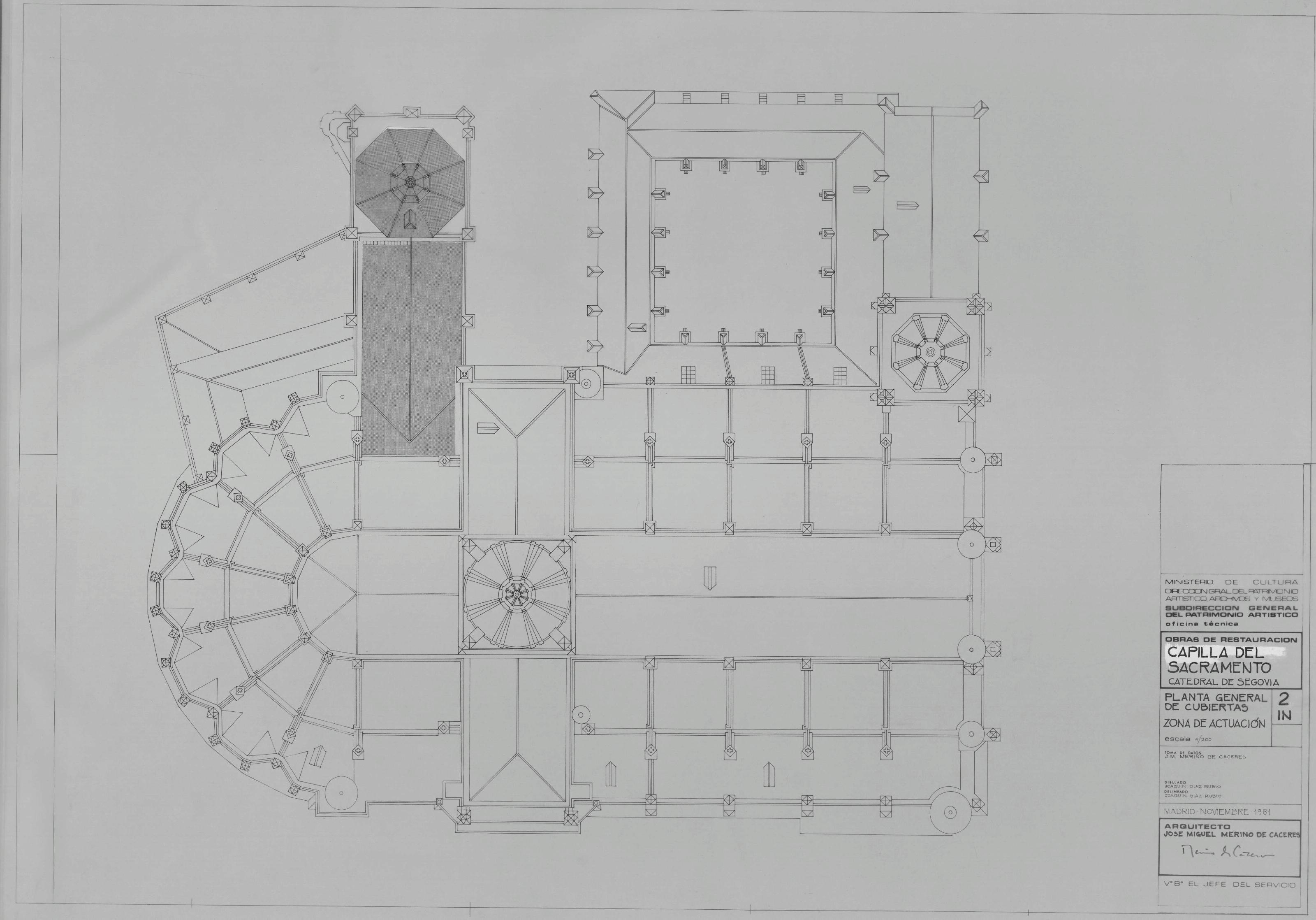CATEDRAL DE SEGOVIA Y CAPILLA DEL SACRAMENTO: PLANTA GENERAL DE CUBIERTAS -ZONA ACTUAL
