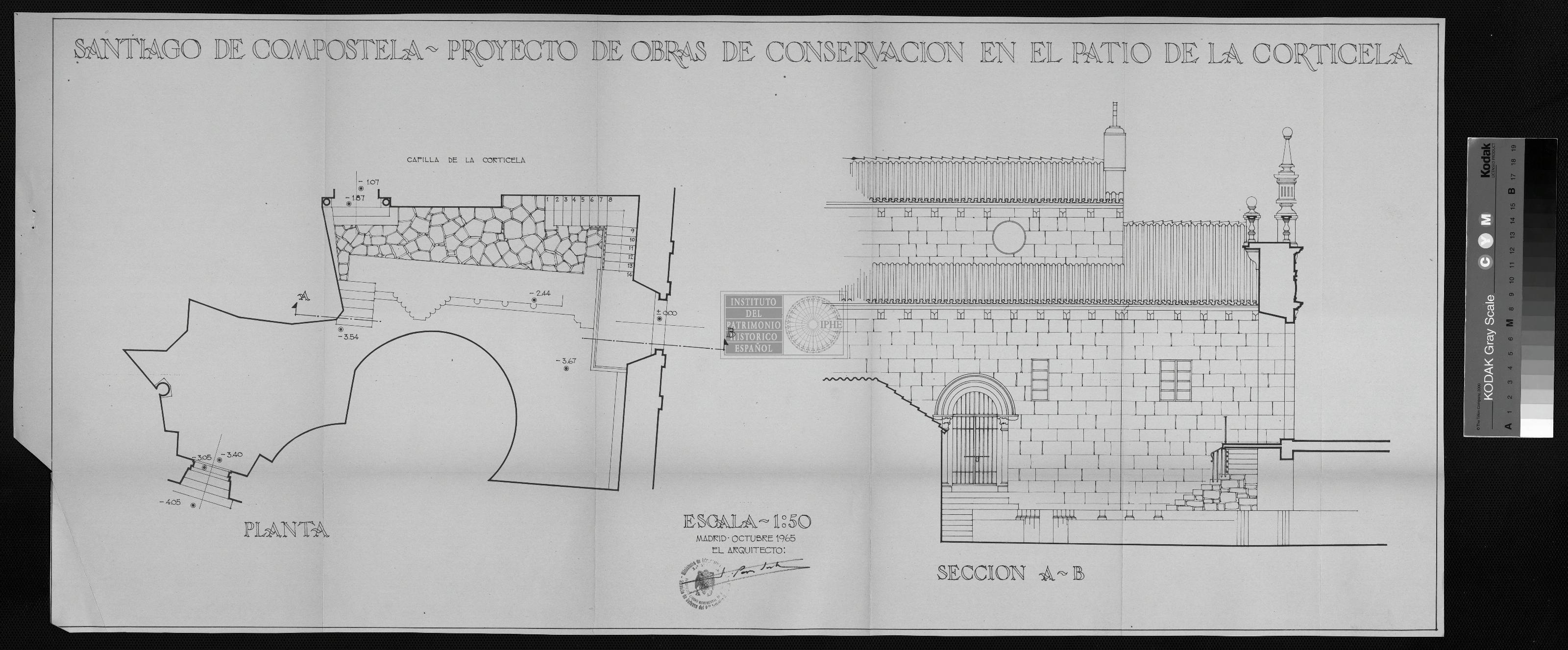 CORONA SUNTILICA: PROYECTO OBRAS DE CONSERVACION EN EL PATIO CORTICELA. PLANTA SECCION A-B (Caja 859)