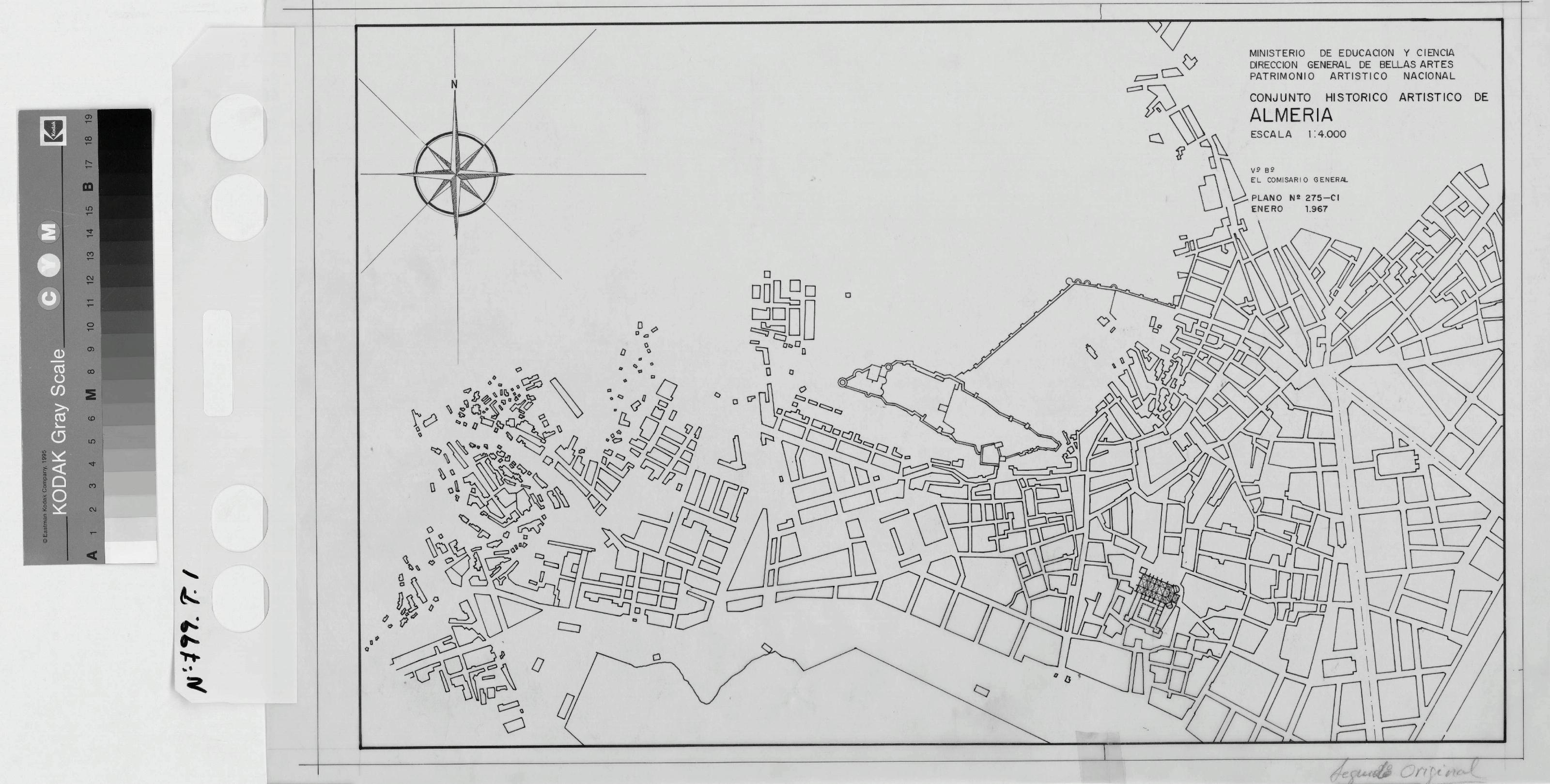 CONJUNTO HISTORICO ARTISTICO DE ALMERIA: PLANO GENERAL Sin anotaciones ni delimitaciones posiblemente dibujado sobre parcelario nº 275-CI - Enero 1967