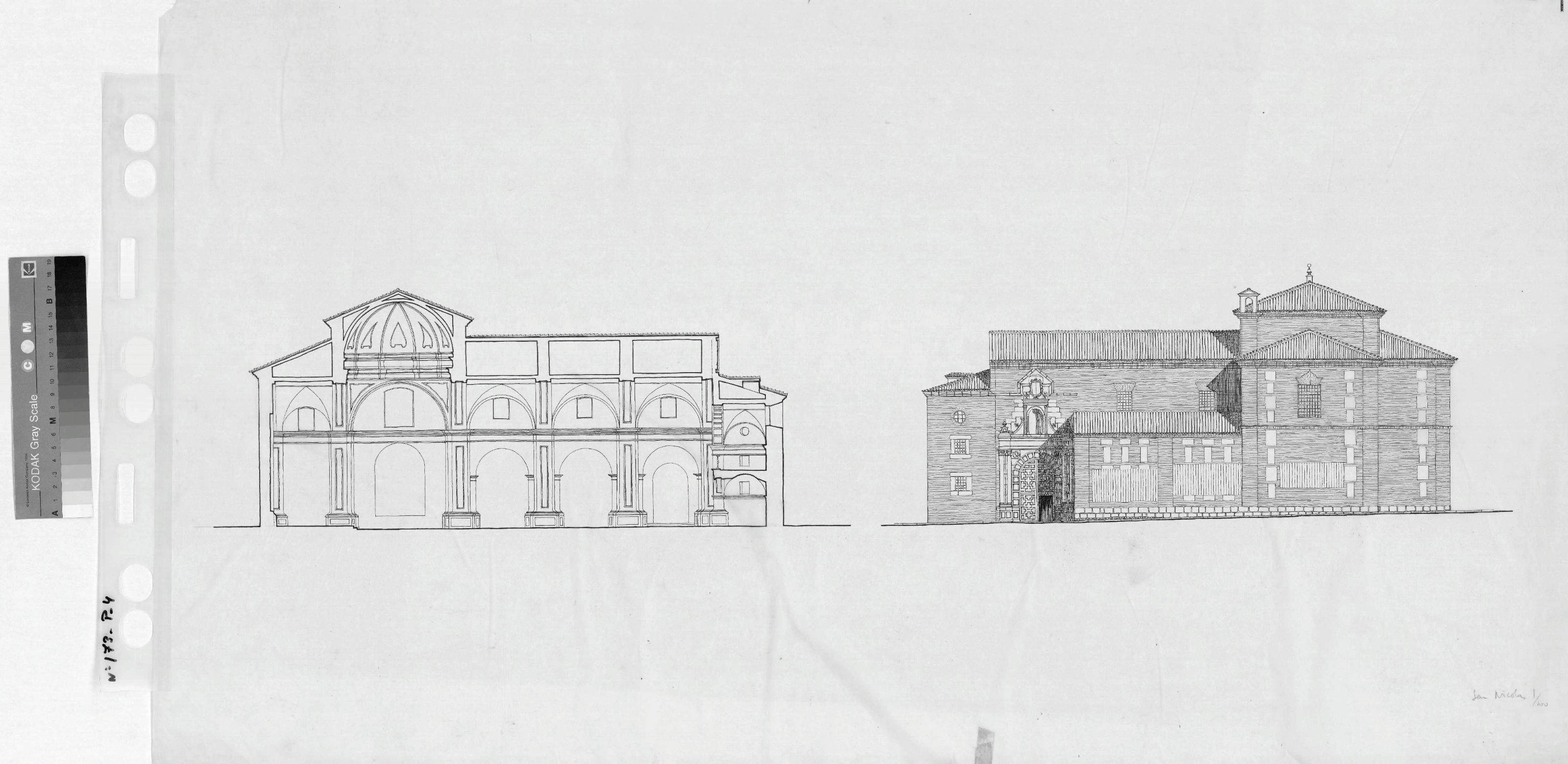 IGLESIA DE SAN NICOLAS: ALZADO Y SECCION . ALZADO DIBUJADO CON MUCHO DETALLE , PLANOS SIN COTAS