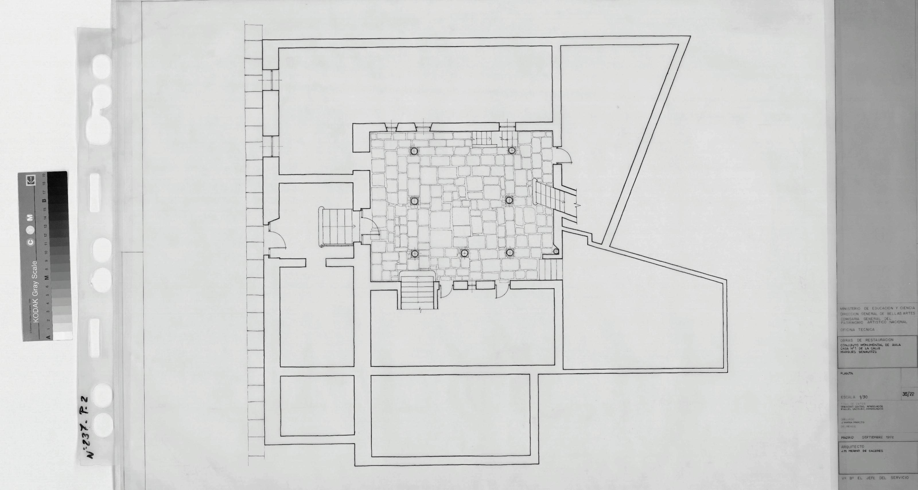 CONJUNTO MONUMENTAL DE AVILA . CASA Nº 1 DE LA CALLE MARQUES BENAVITES: PLANO DE PLANTA DE LA CASA , APARECE DIBUJADA LA DISTRIBUCION DE LAS DISTINTAS DEPENDENCIAS PERO NO ESTAN IDENTIFICADAS.