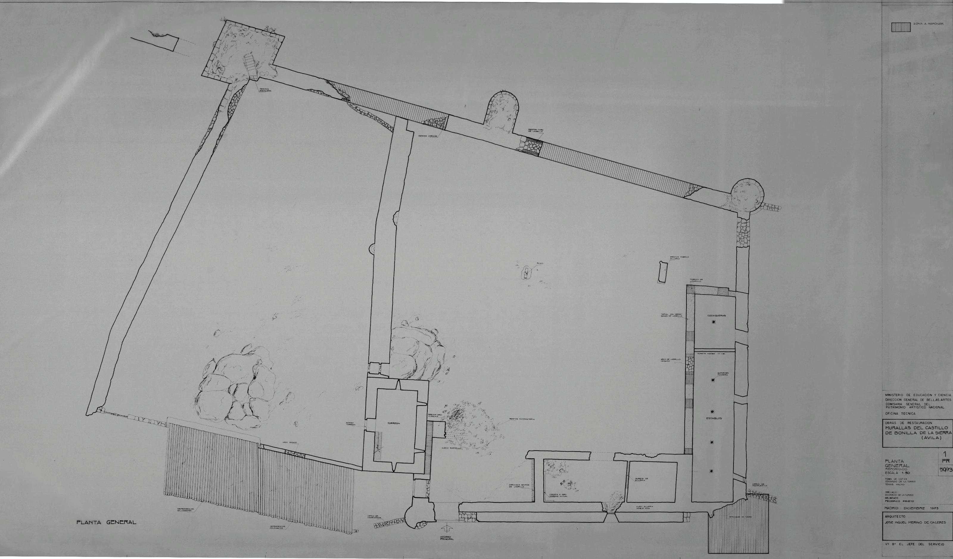 MURALLAS DEL CASTILLO: PLANTA GENERAL, REFORMADO. EN ESTE PLANO MARCA LAS ZONAS A REPONER DEL CASTILLO Y MURALLA.