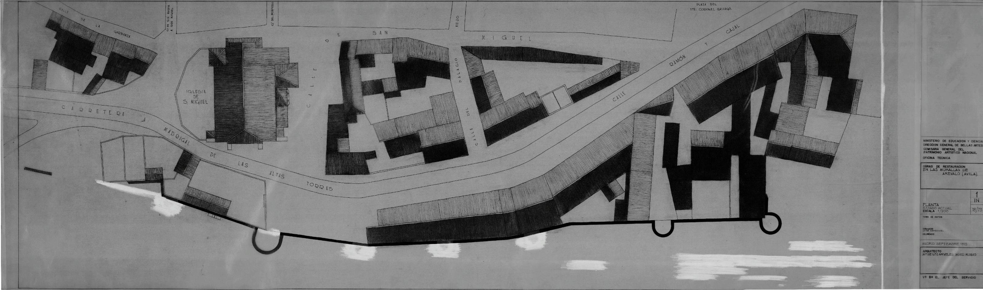 MURALLAS DE AREVALO: PLANTA GENERAL , ESTADO ACTUAL, NOS MARCA LA ZONA DE LA MURALLA A TRATAR .NOMENCLATURA DE CALLES. SIN COTAS.
